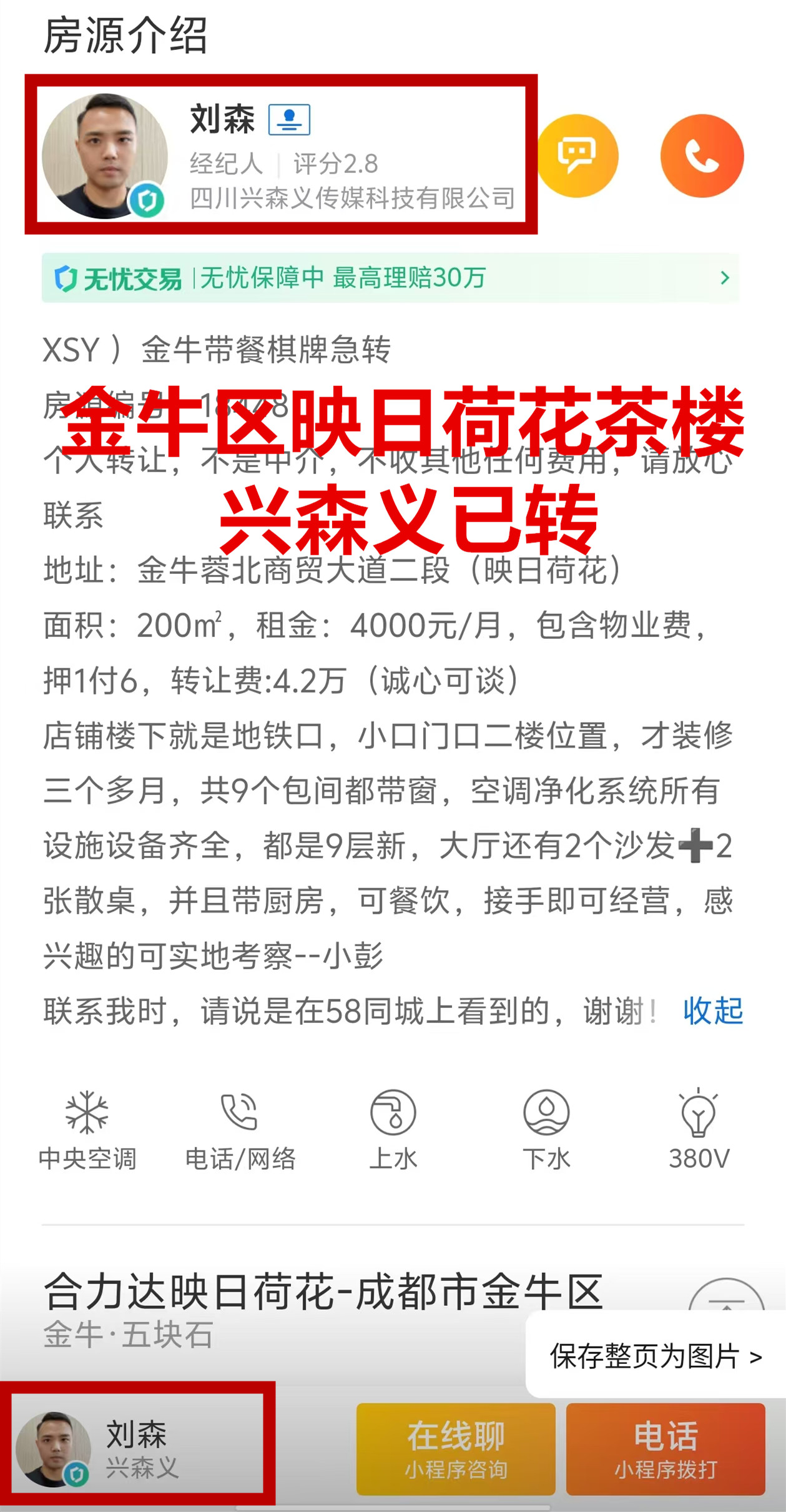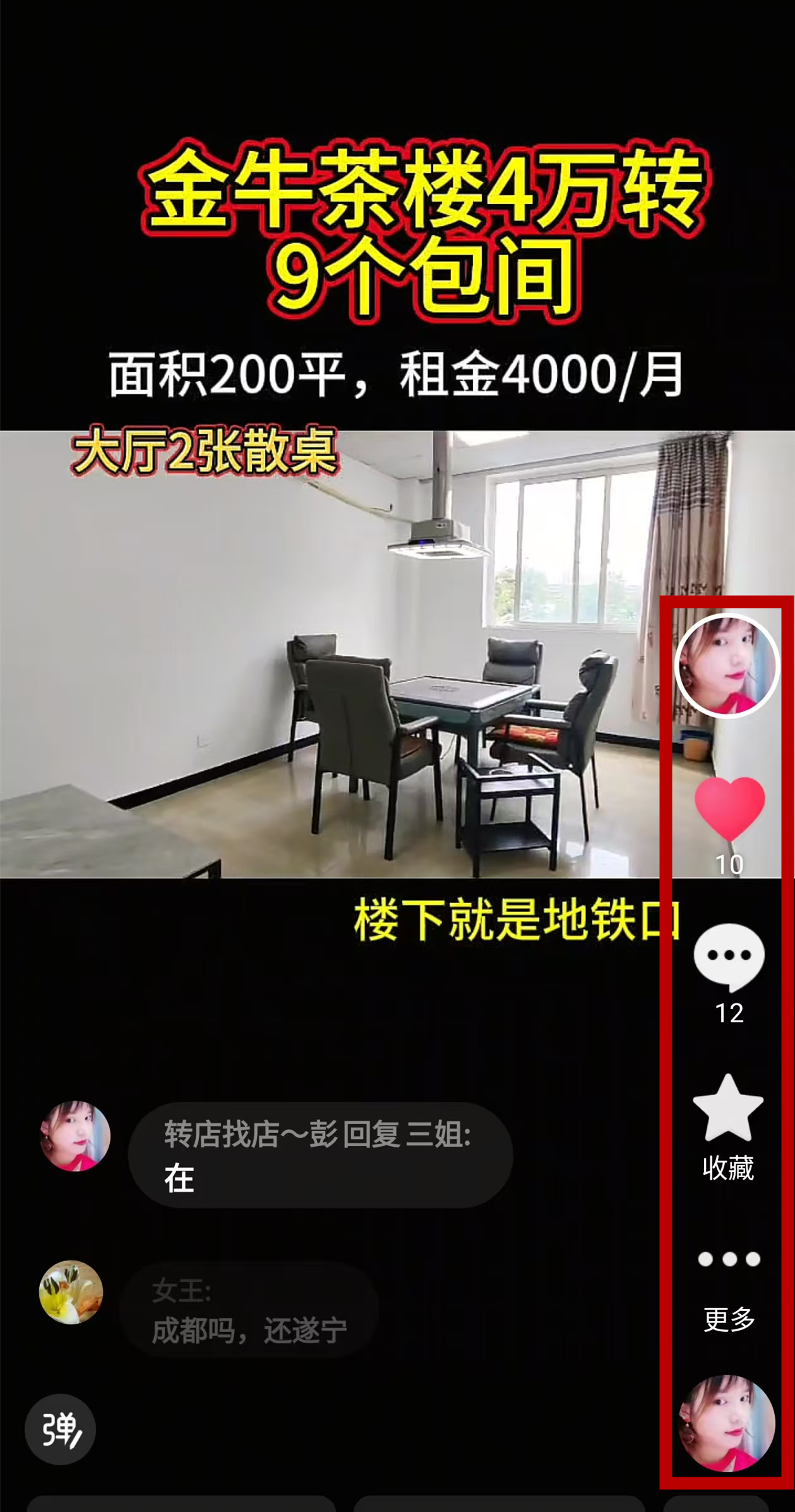 金牛蓉北商贸大道二段茶楼已转让