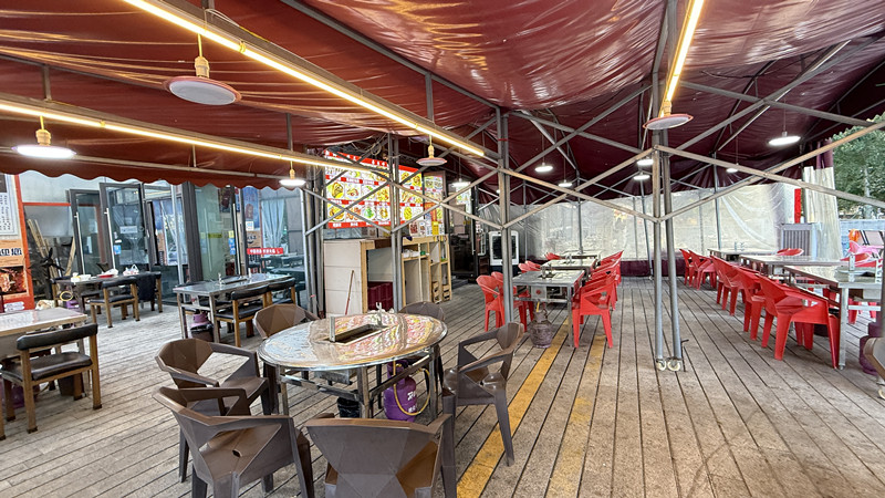 2、现经营了多年夜宵烧烤店,转角铺天然气,超大固定外摆500_1000平左右,通天然气,独立厨房操作间。