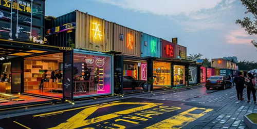 周边情况:本潮玩美食商业街位于四川传媒学院旁四川工商学院校门200米周围还有成都川科外国语学校、成都五月花职业技术学院、郫都区团结学校、成都五十二中等,学生群体丰富在校师生超10万人,而且团结最大的幼儿园就在街区内,每天接送小孩人络绎不绝,人流量完全不愁周围还有靖源下街471号院、水韵榕馨、仁和江南、临水居、鸿盛花园、翰林小区等。常驻人口超20万,郫都团结消费力集中于高校周边,学院街、靖源下街、团三路三条主干道串联高校师生居民消费组团。目前高校片区消费组团呈现密度高、活力高,消费力不用愁。同时周围还有影视城,影视基地,剧组等外来消费主力军。 本潮玩美食街区,以赛博朋克风为主,灯光效果拉满,同时设置的有主舞台,且现已有知名企业入住,太平洋影院已经签约,而且中国好声音也和我们达成合作,每个月在此地有4次活动,知名沉浸式剧场也已经签约.现在在街区内共有200多个集装箱可供选择,可以单拿也可以多个串联拿也可以独栋一起拿,根据项目来定位子,目前已经有20多个位子已经定下,采取先到得的政策,同时本项目也是团结重点项目 街区还配置的有体育公园,篮球场足球场,独立停车场,充电桩等配套设备,本项目是以打造成创意国潮的灵感空间艺术潮流的社交基地结合市井烟火,特别适合品牌小吃,奶茶,大型餐饮,酒吧,剧场,餐吧,休闲娱乐,美容,潮玩,服装。直播公司等各种业态。