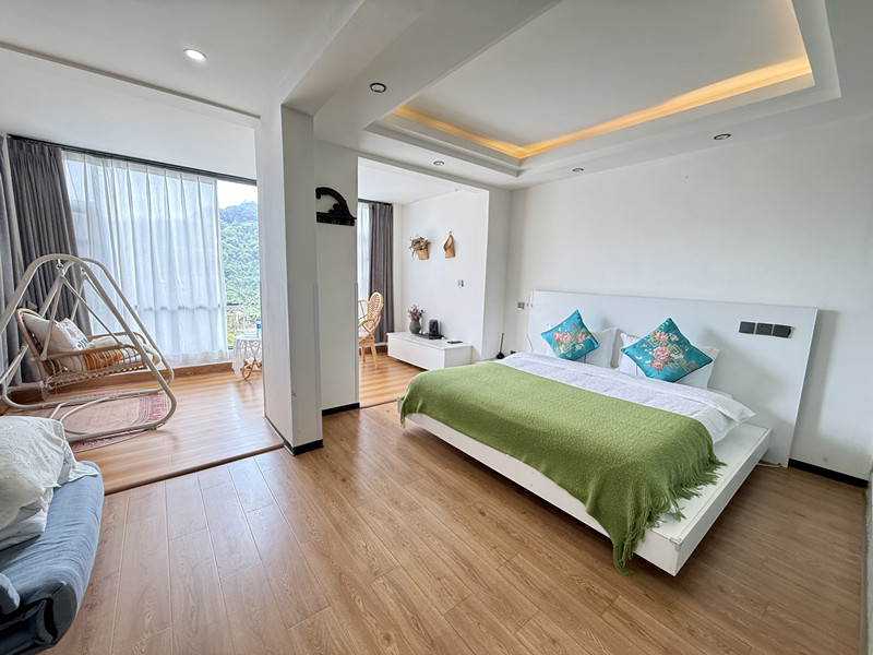 2、店铺情况:度假民宿依山而建,丽江风格打造,整个院子被绿意萦绕,种满了很多品种的绿植,空气特别的好,负氧离子 能达到3.2万 个,而且正朝日出方向,天气好可以看日出。晚上赏月品茶,民宿共四层,带有房间14个,2个备用房,超大餐厅,会议室,超大庭院,4-6月份蔷薇花爆满整个院子,是拍照打卡的网红店,是青城后山一颗耀眼的星光,厨房带有水电气三通,而且民宿后院拥有1000多平的超大绿色森林,里面被一棵千年的紫藤围绕,风景非常的好,目前用作棋牌喝茶和特色柴火鸡部分,后期可以加私汤或者是小木屋玻璃房,改造空间特别大,老板经营多年,老客户特别的多,同行接手就是旺季。