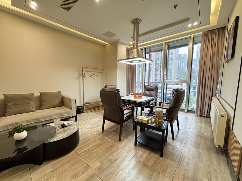 店铺情况:目前大厅4散台,11 张大型卡座,1功夫茶雅间包间,棋牌包间18个,全部带窗,全都是大包间,均带独立卫生间,全店地砖,大厅带了地暖,包间采用暖气片,整店大金中央空调独立控制。棋牌机麻等设备均使用四方城一套,全店都是牌子货。带独立厨房,有天然气,大厅地暖用气,带有厨房,可带餐,厨房用电,水电是民用。目前生意稳定,正常经营中,员工不知晓情况,看店请勿扰员工和客人。
