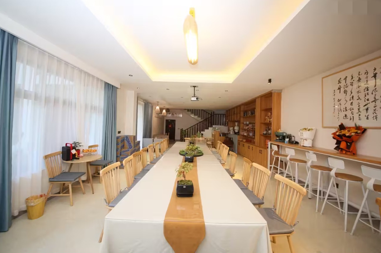 店铺情况:青城山懂村.私汤四合院民宿,独栋3层,证件齐全,带两个户天然气,一民用,一个商用。有14个精装民宿房间,其中4个私汤房间。有1个精美KTV包间,1个早餐就餐厅。公汤池有4个,其中1楼有3个精美庭院公汤池,楼顶4楼有1个露天公汤池,布局合理。设有会议厅。停车方便。河边有两个大厅沿岸休闲长廊,一个是就餐厅,一个是休闲娱乐麻将大厅。河岸上有烧烤帐篷,休闲区域。夏季可耍水,很清凉。河水平缓,干净。现整体便宜出租,已完全打造好接手可经营。--小程、小余、小李