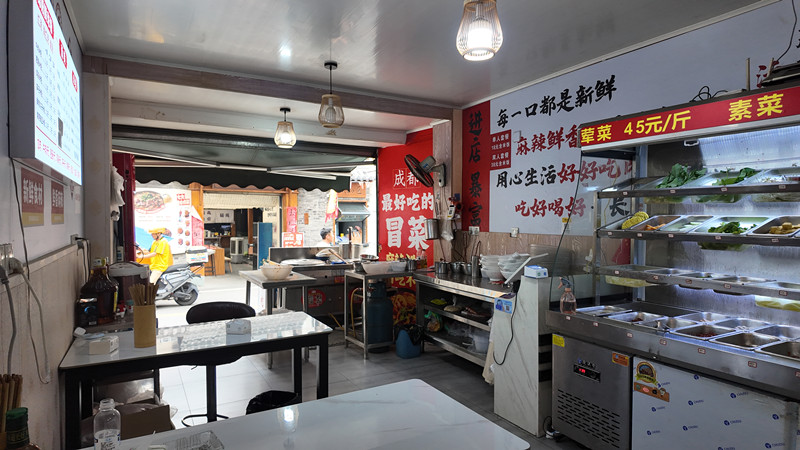 店铺情况:本店处于市中心的中心地段,美食餐饮一条街,同时在小区门口。位置好。店面户型方正,使用面积大,店面背后有单独厨房,二楼均可使用。设施设备齐全。适合:冒菜米线面馆、快餐小吃等。