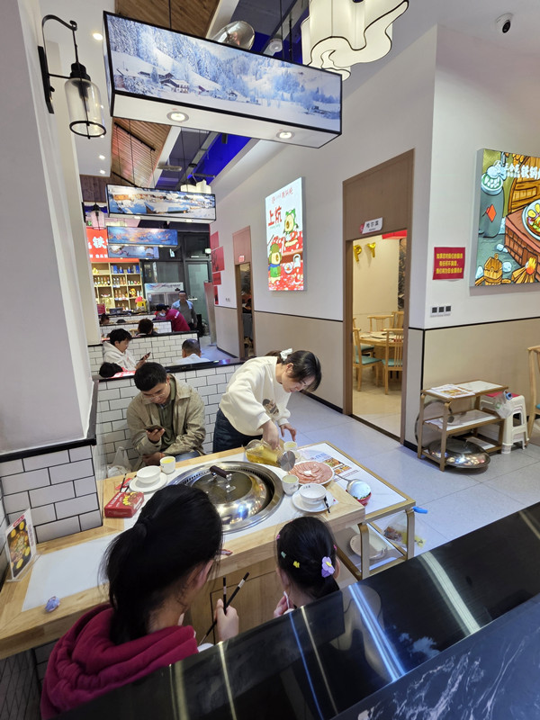 2,店铺情况: 现经营东北铁锅炖,20米招牌显眼,共7大圆桌 ,2包间圆桌,14长方形桌,美团双平台商家,铺面方正,彩光良好,水电、八方气独立烟道四通,餐饮设施设备齐全,覆盖式中央空调加独卫,电梯扶梯口、东北同行接手直接可营业,火锅串串、汤锅羊肉汤、夜宵中餐等都是比较好的选择,接手无需装修。--小冉