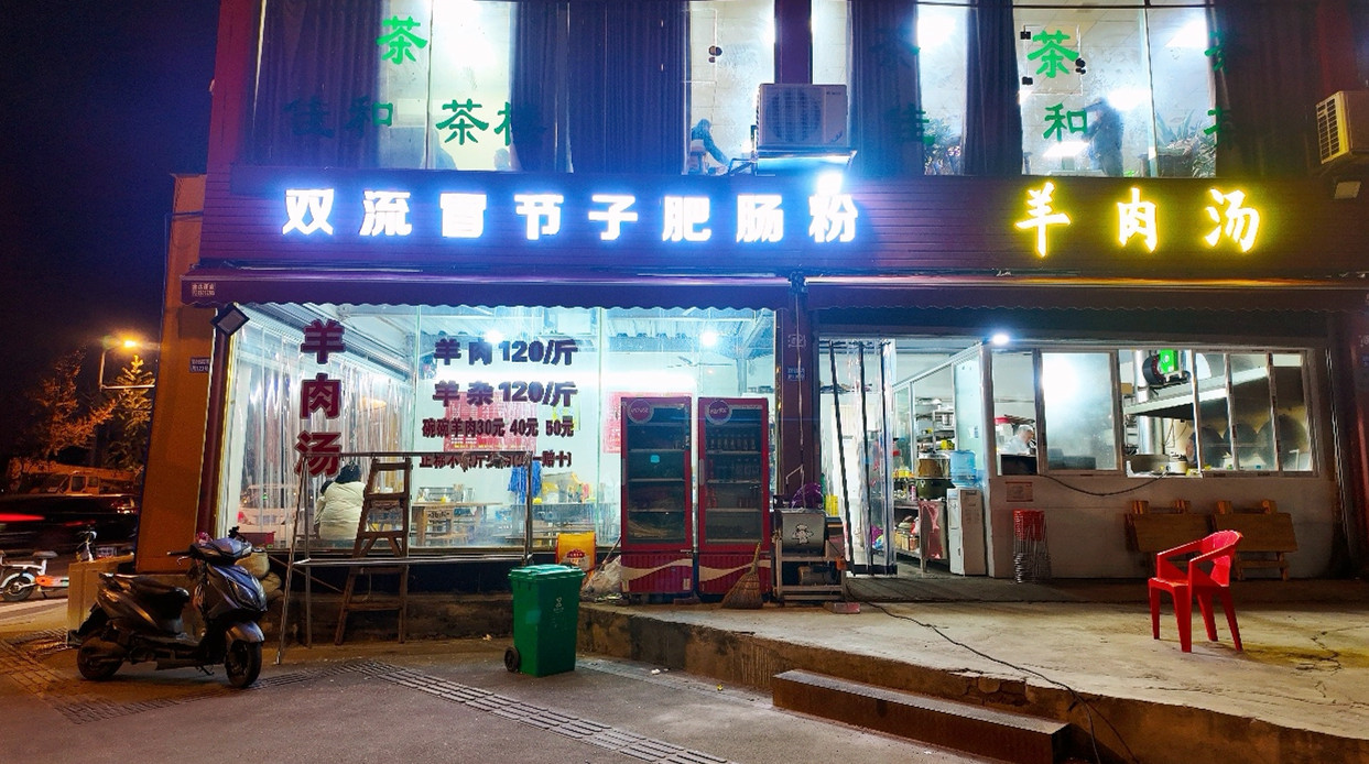 店铺目前经营肥肠粉羊肉汤,快餐,设备设施齐全,而且带有超大外摆,带独立卫生间