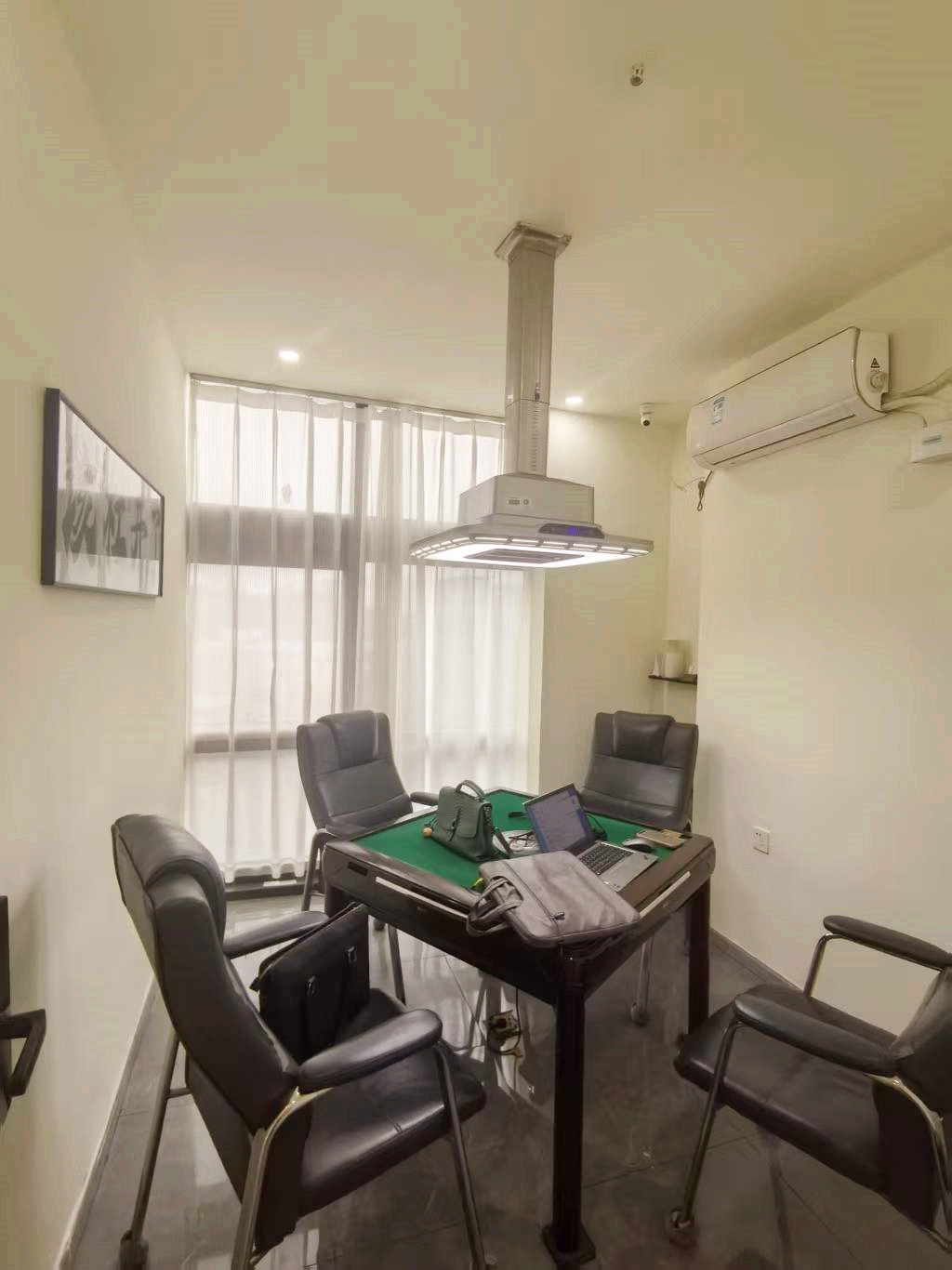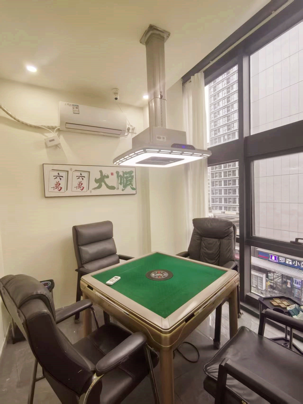 总共五个包间,3个带落地窗➕2个小包间,都配备空调和系统设备,设施齐全,接手即可经营,设备设施都是全新的,都是玉石大麻将,老客户多,自带流量。
