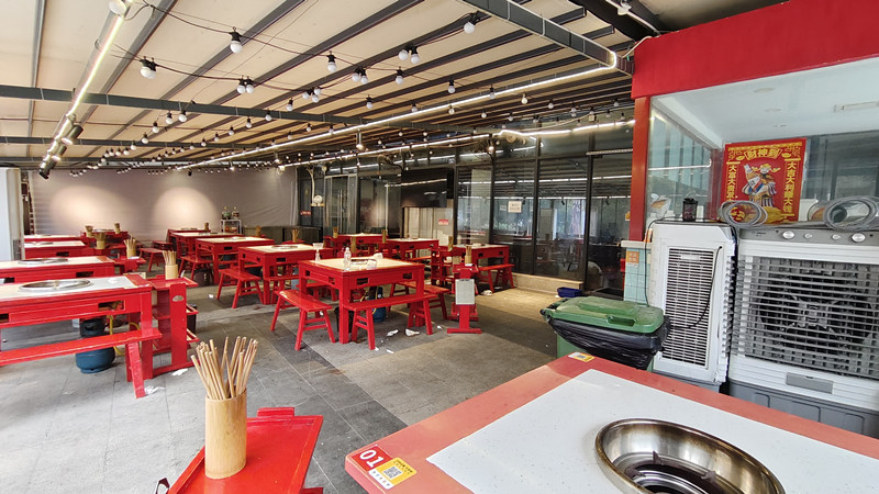 2、店铺情况:店铺带有120平固定大外摆,转角铺,展示面非常大,铺面方正,带基础装修,有烟道,独立卫生间,凉菜间,业态不限,特别适合重餐饮,这边全是品牌餐饮店,大米先生,巴味仙,嘎嘎鸭脑壳等,旁边还有一个美食街,自带流量。--小彭