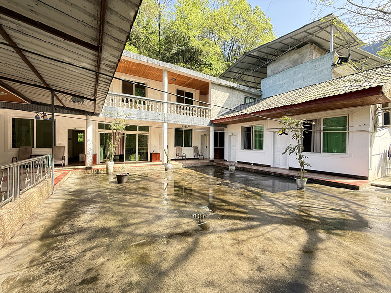 2、店铺情况:民宿农家乐依山而建,共四层,一楼二楼都是餐饮,棋牌室,厨房区域,还有住宿房间,三楼四楼全是房间,总共房间19个,河边的几十米长凉亭也可使用,平时喝茶棋牌娱乐都可以,停车场就在凉亭旁边,有实力的老板拿过来还可以重新修建,总共打造20多个房间没有问题,位置没的说,可以说是自带流量,青城山大体量路边位置,目前可以整体出租,免租期给1年,如果后期投资大,免租期还可延长,先到先得!--大彭