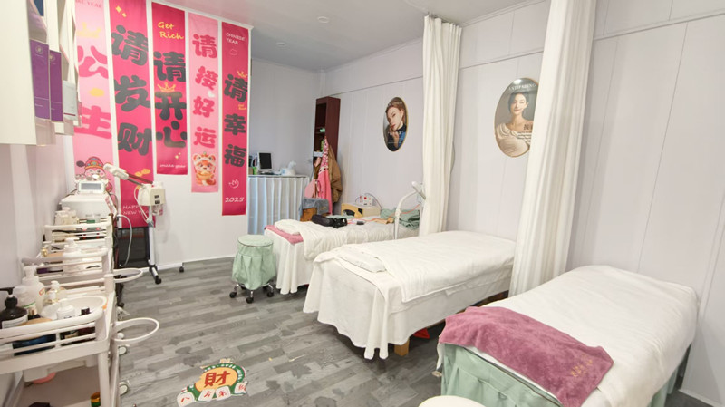 2、店铺情况:店铺位置当道显眼精装修,格局方正,靠近小区门口,客源人流必经之路,配套齐全,带有独立卫生间,共五张美容床(两张是美容头疗一体的),小几万就转,房租也便宜,同行接手可直接经营,不会的老板娘还可以带你