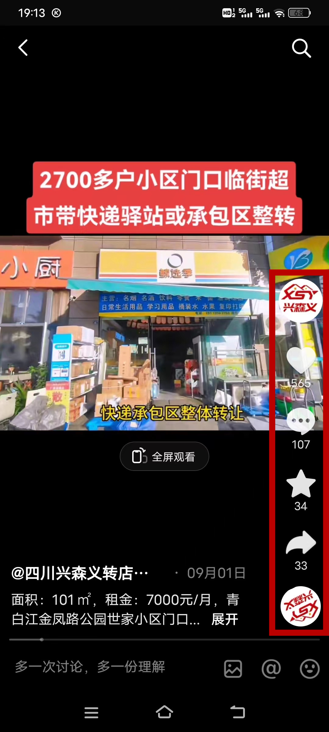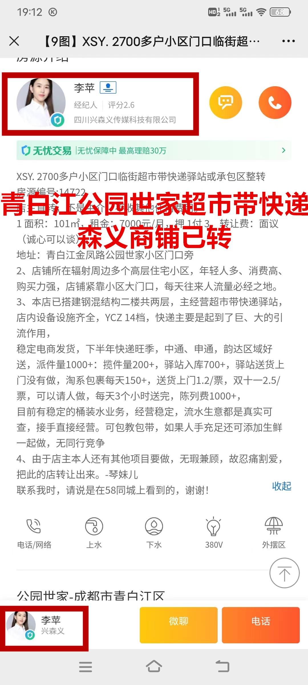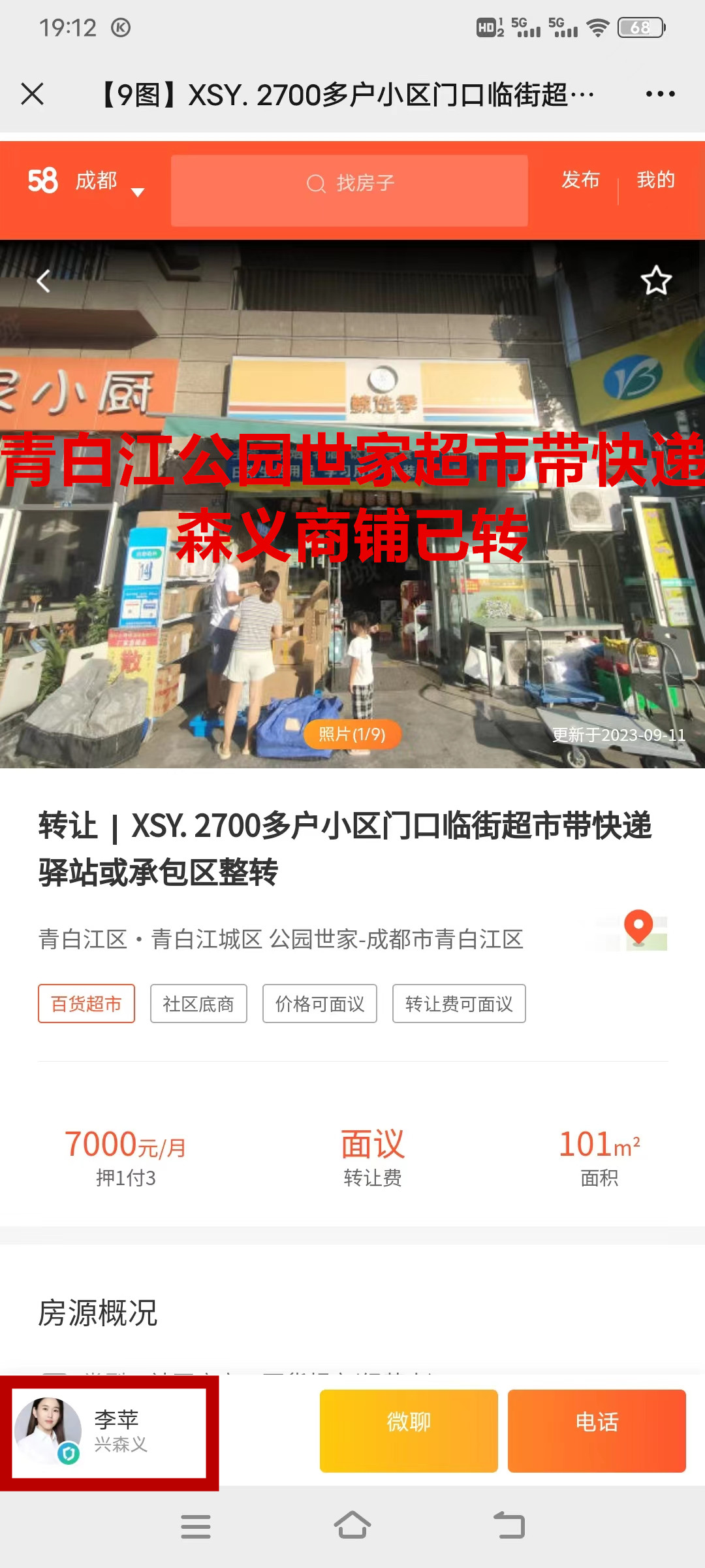 青白江金枫路公园世家超市带快递已转让