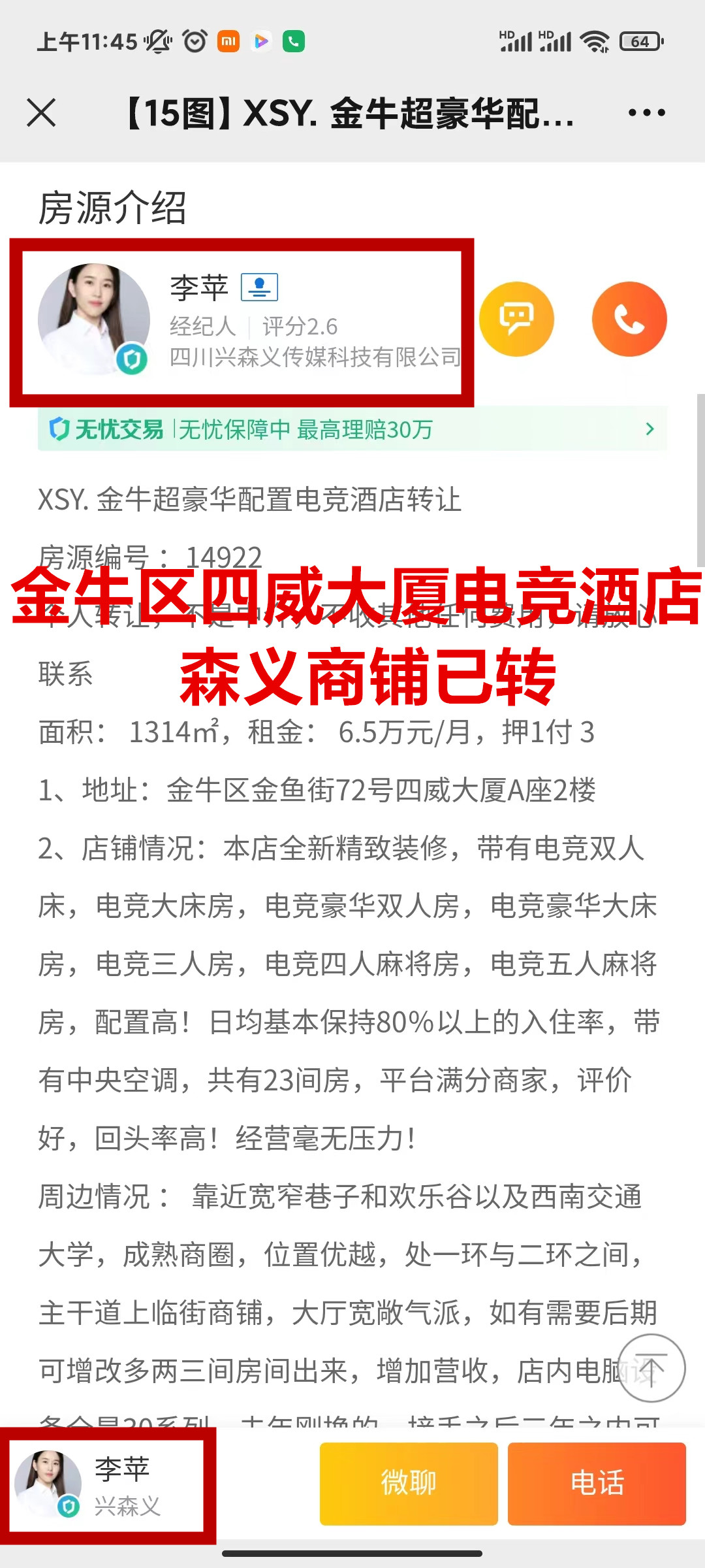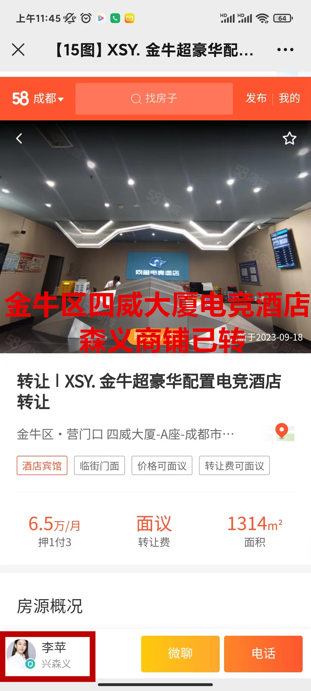 金牛区金鱼街四威大厦电竞酒店已合作成功