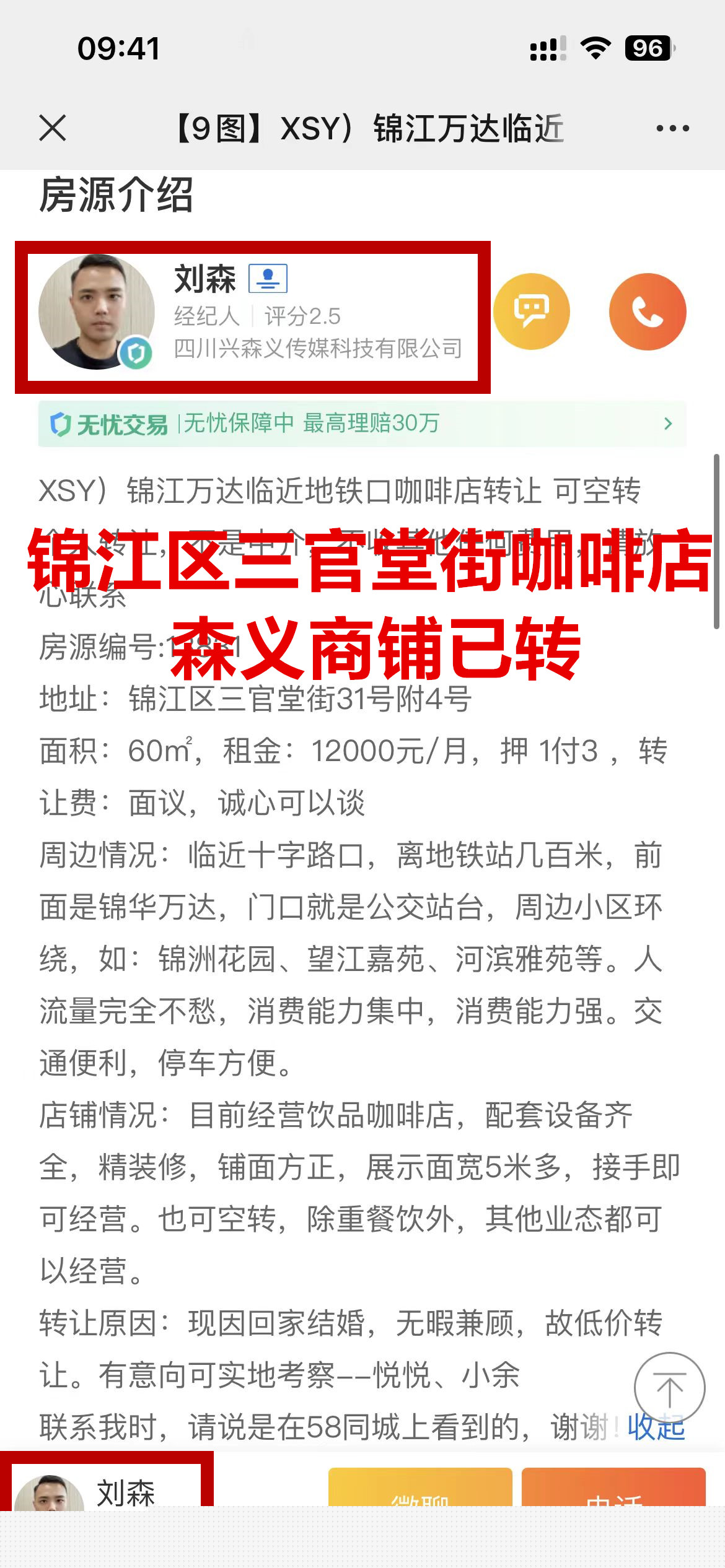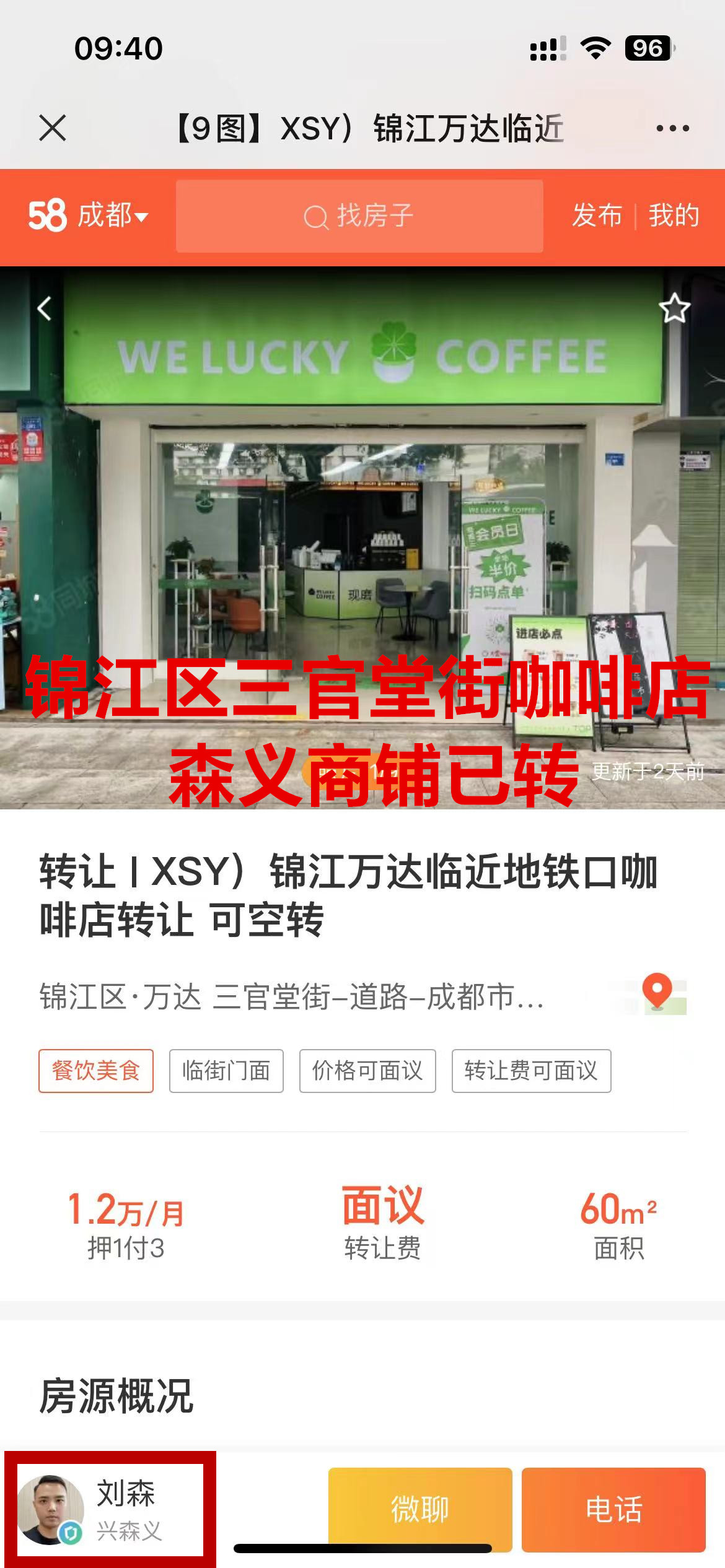 锦江区三官堂街咖啡店已转让