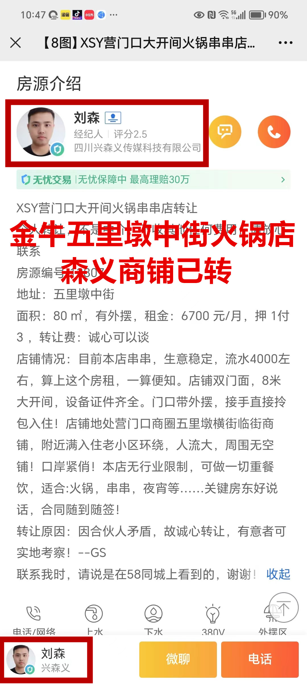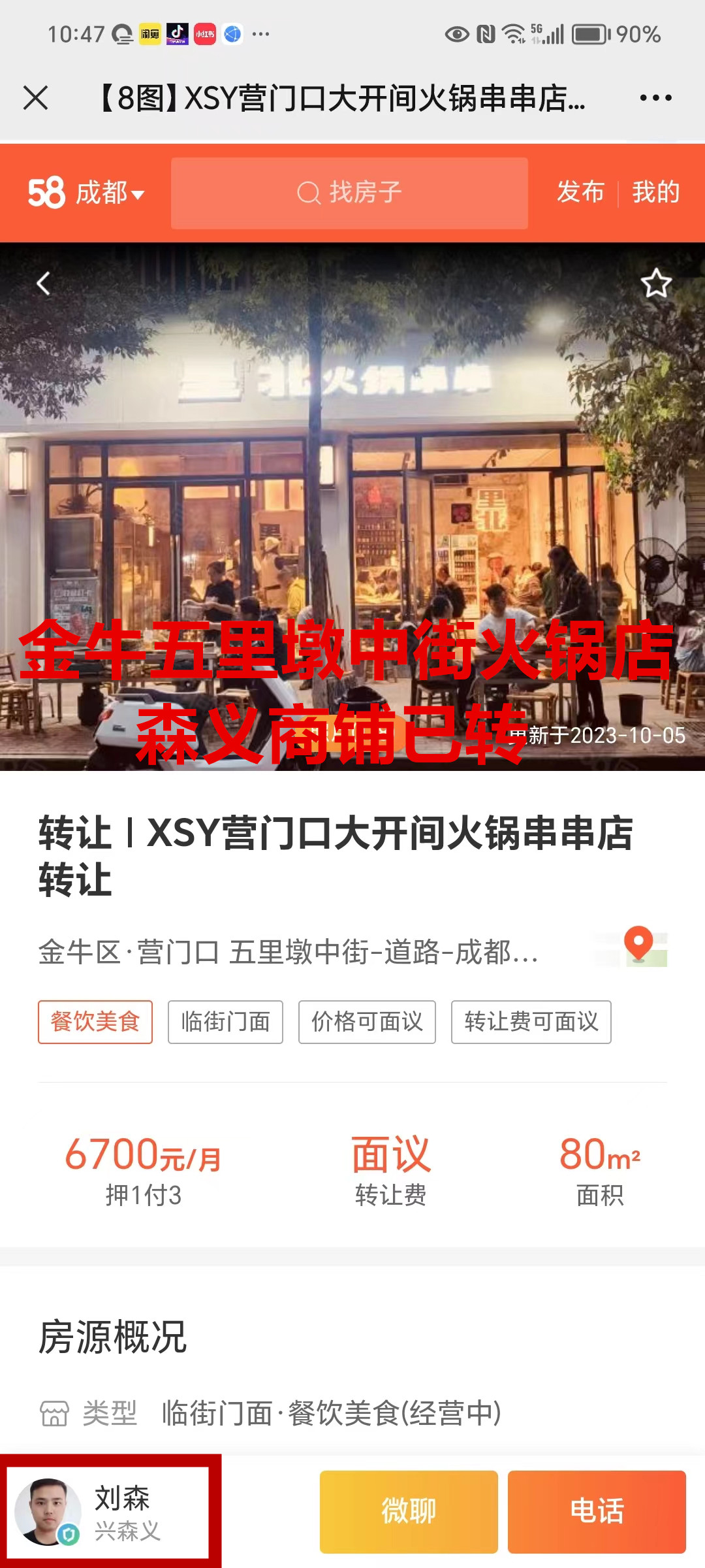 金牛区五里墩中街火锅串串店已转让