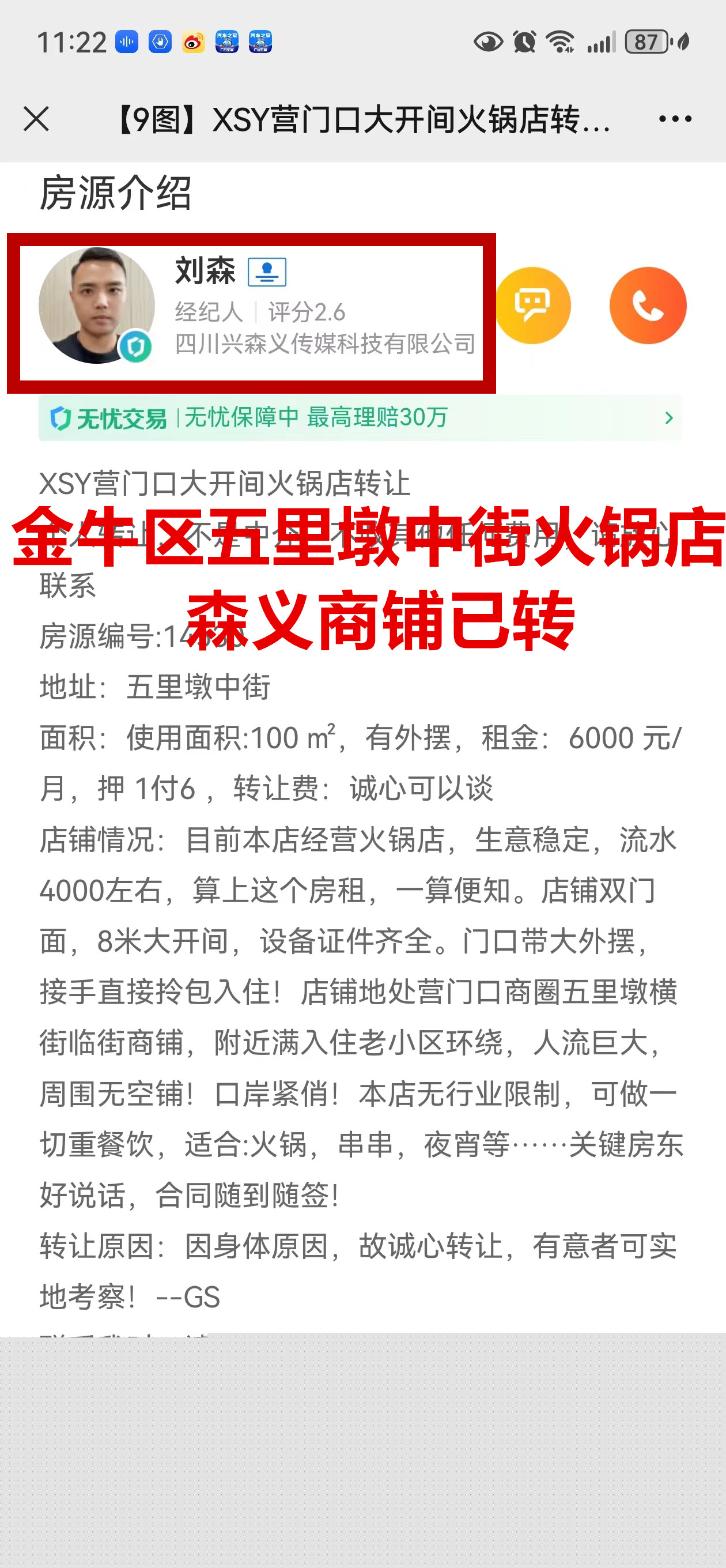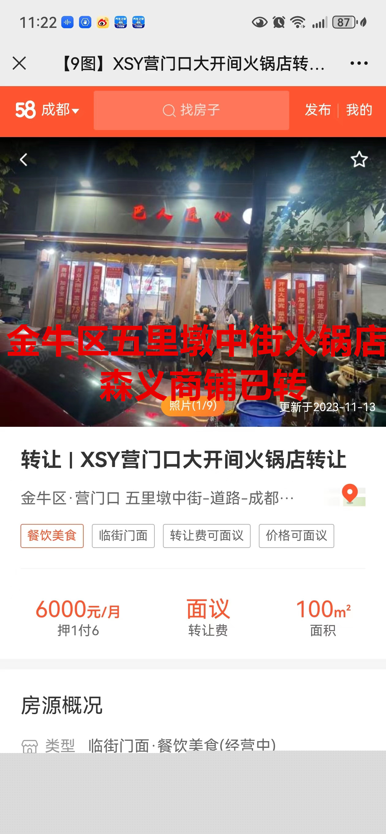 金牛区五里墩中街火锅店已转让