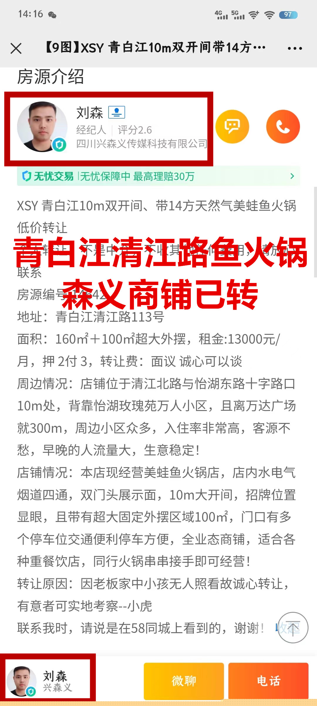 青白江清江路鱼火锅已转让