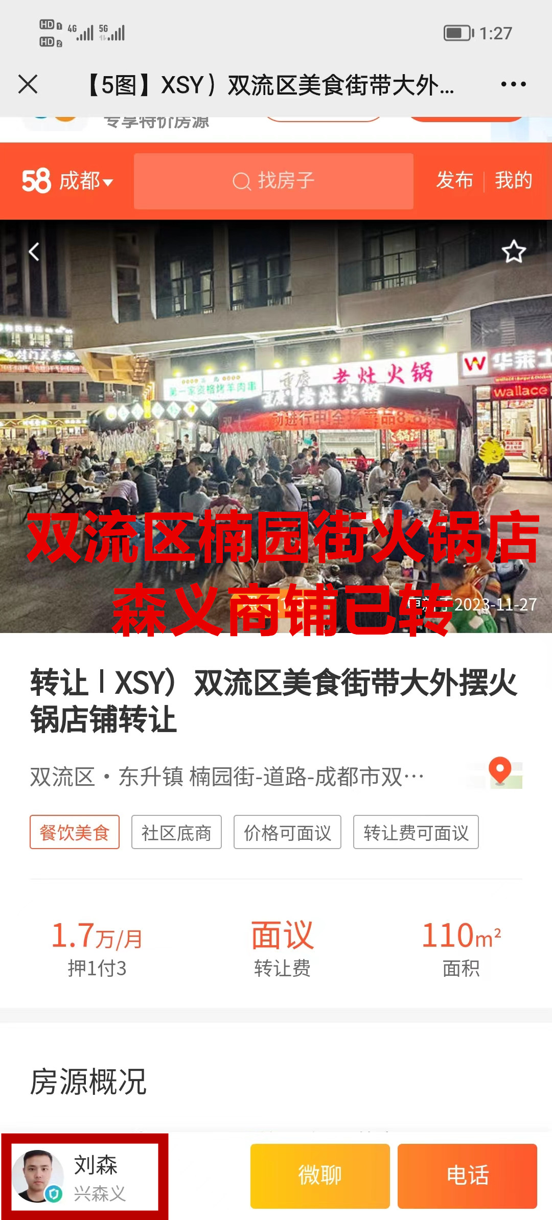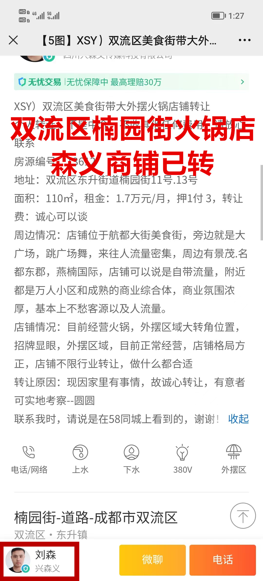双流区东升街道楠园街火锅店已转让