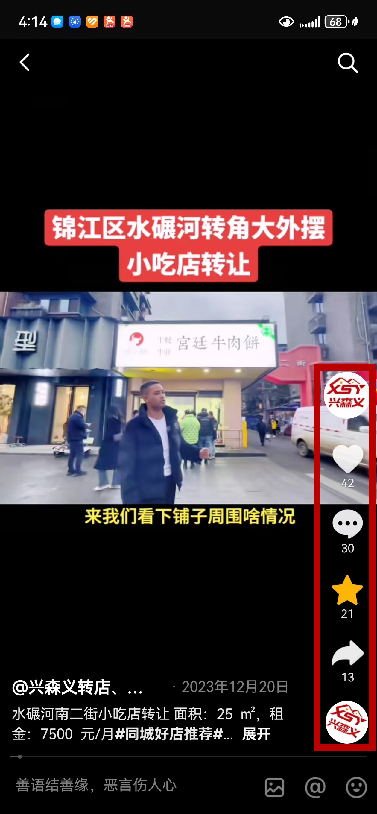 锦江区水碾河南二街小吃店已转让