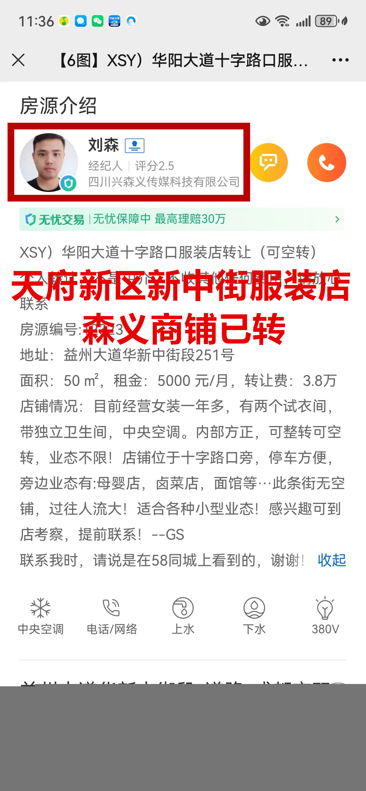 益州大道华新中街段服装店已转让