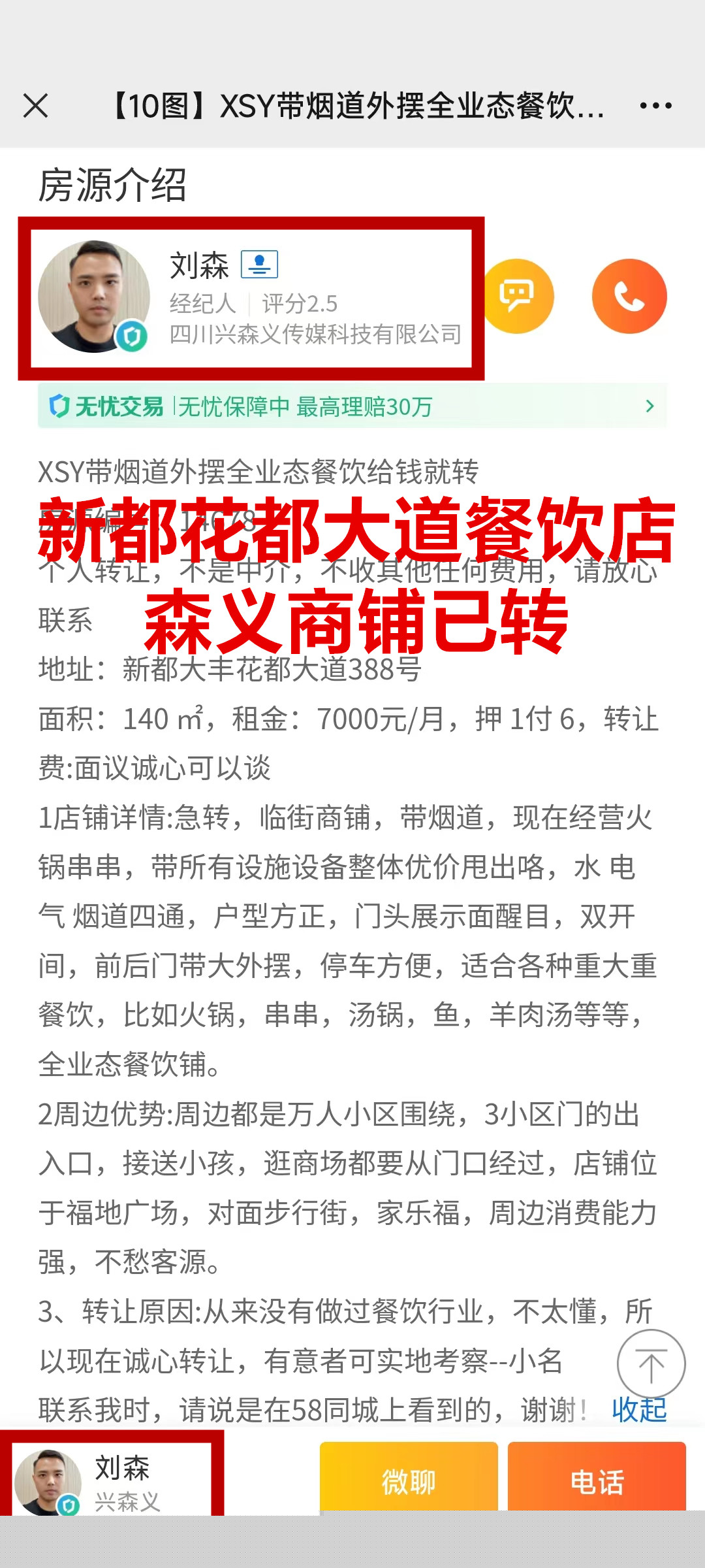 新都大丰花都大道餐饮店已转让