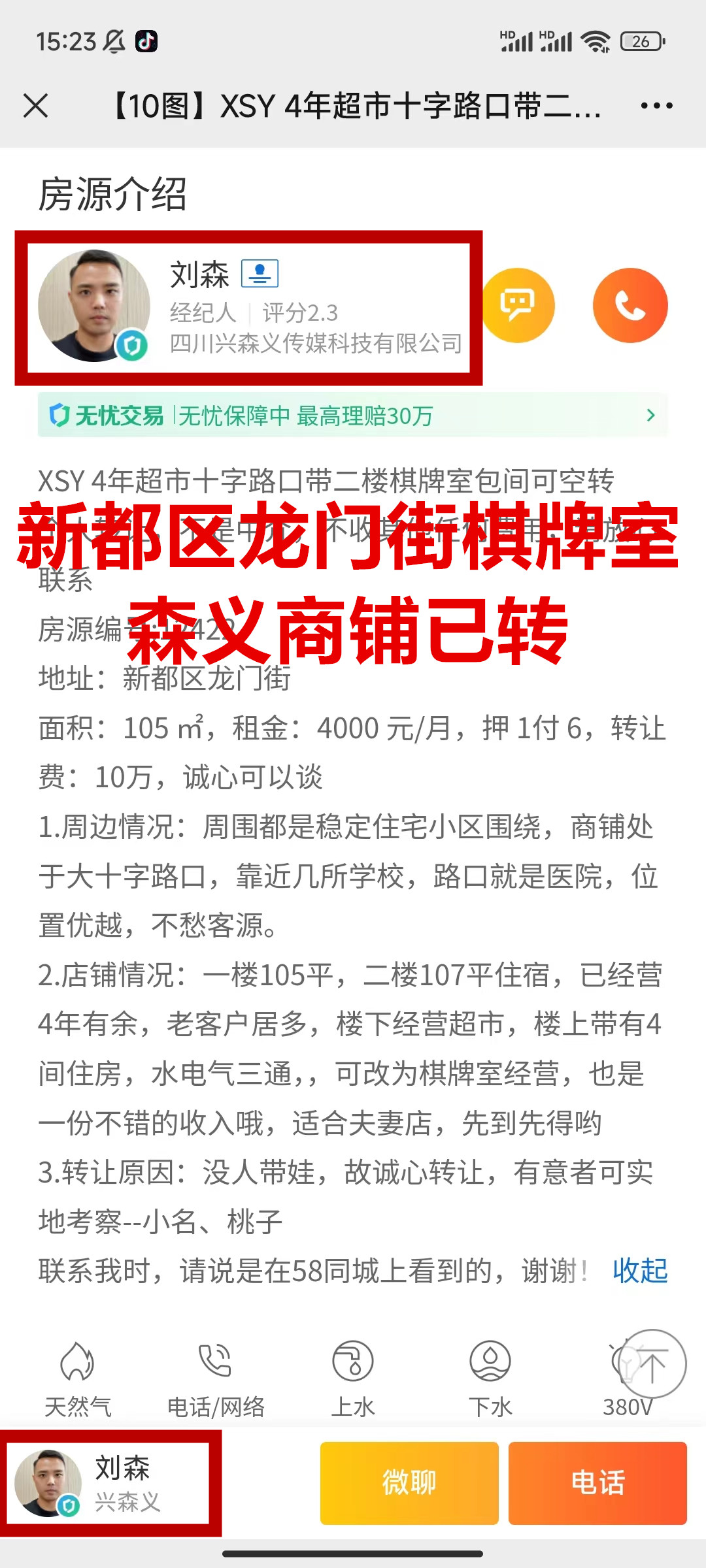 新都区龙门街棋牌室已转让