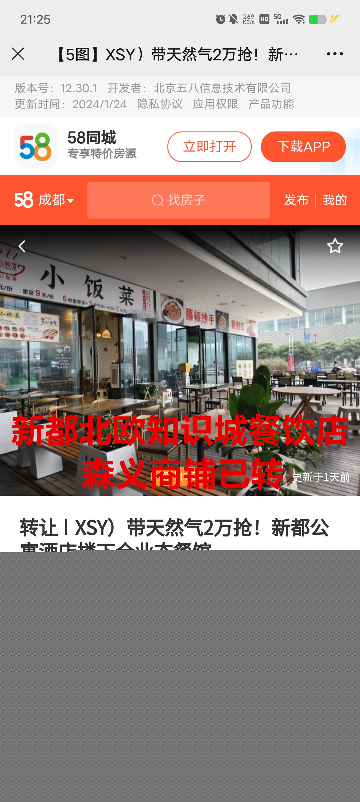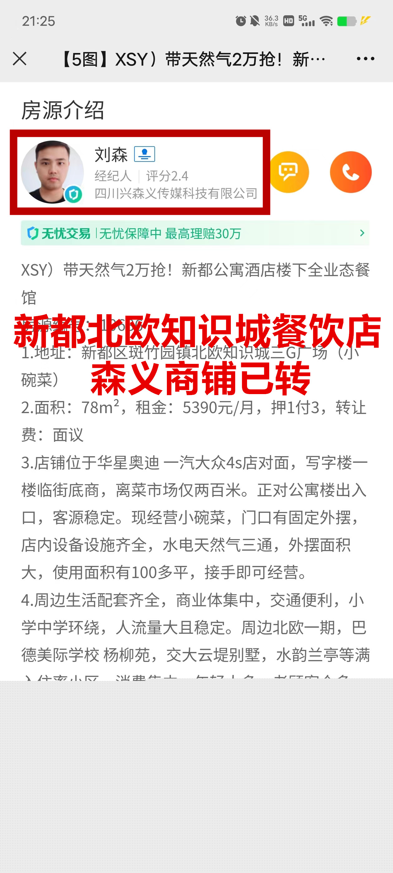 新都区斑竹园镇北欧知识城3G广场餐饮店已转让