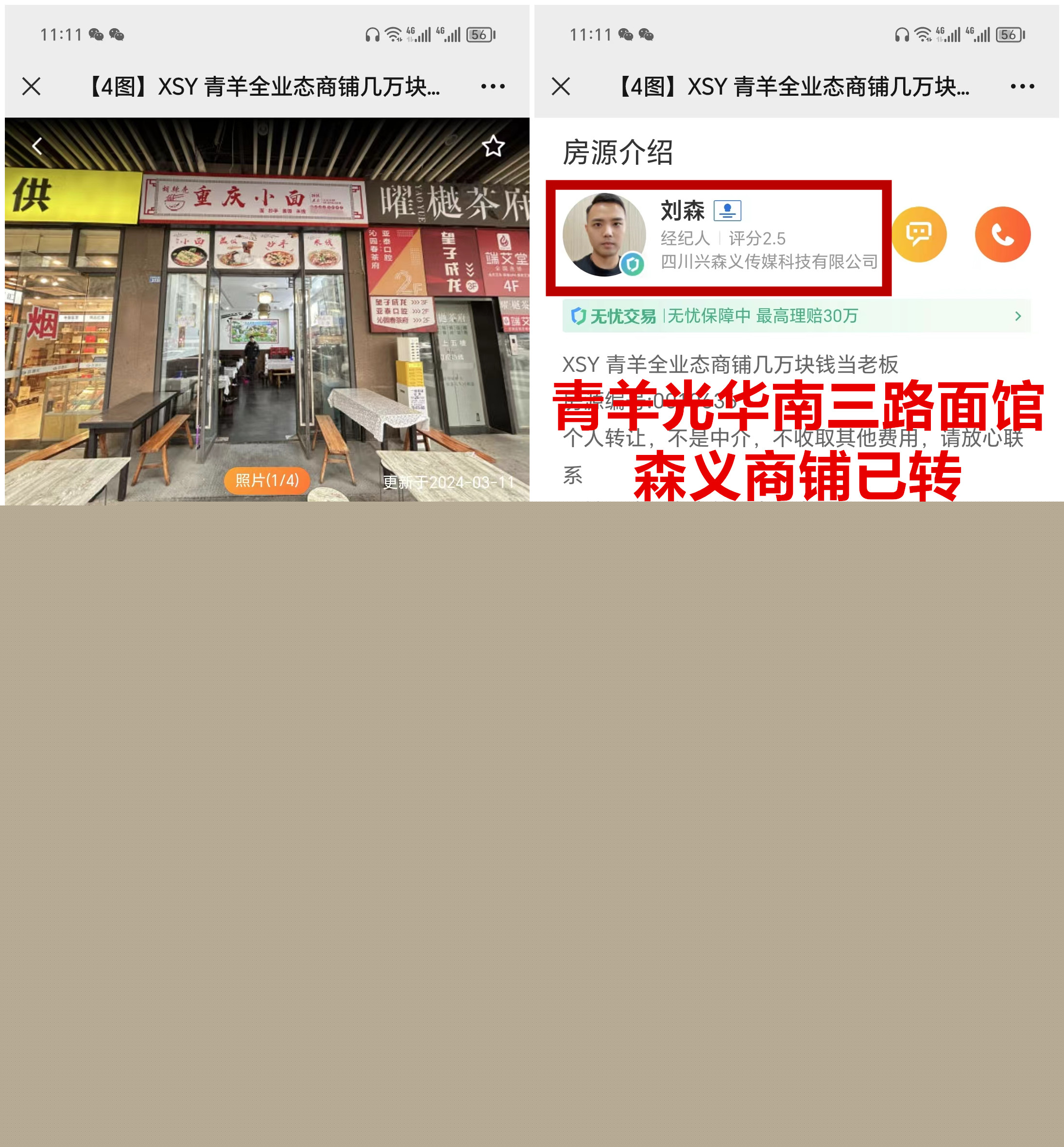 青羊区光华南三路面馆已转让