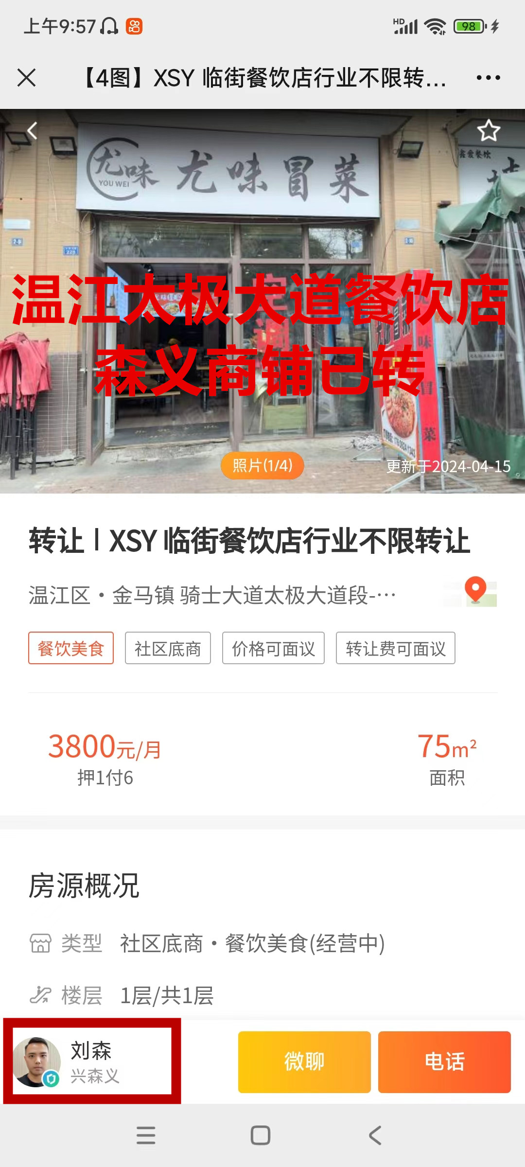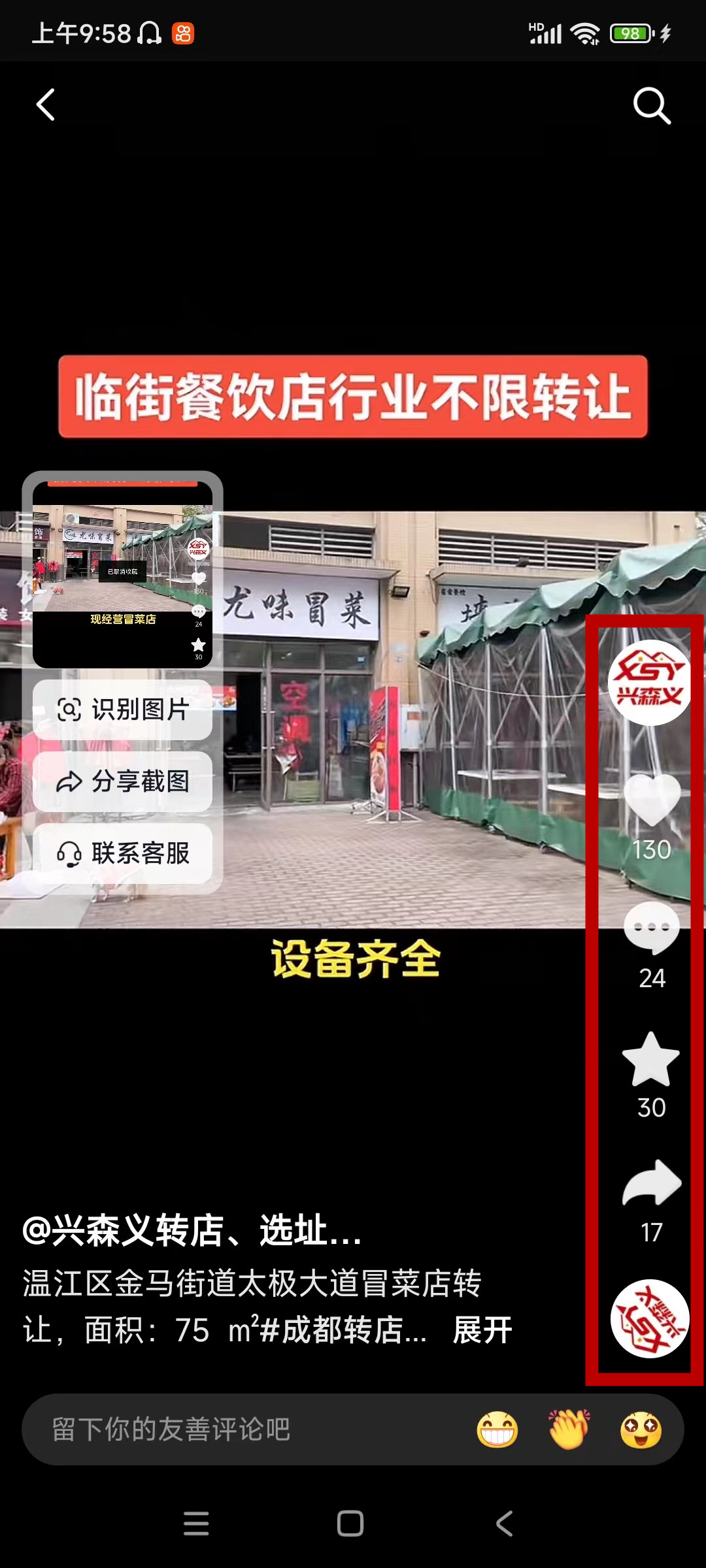 温江区金马镇太极大道餐饮店已转让