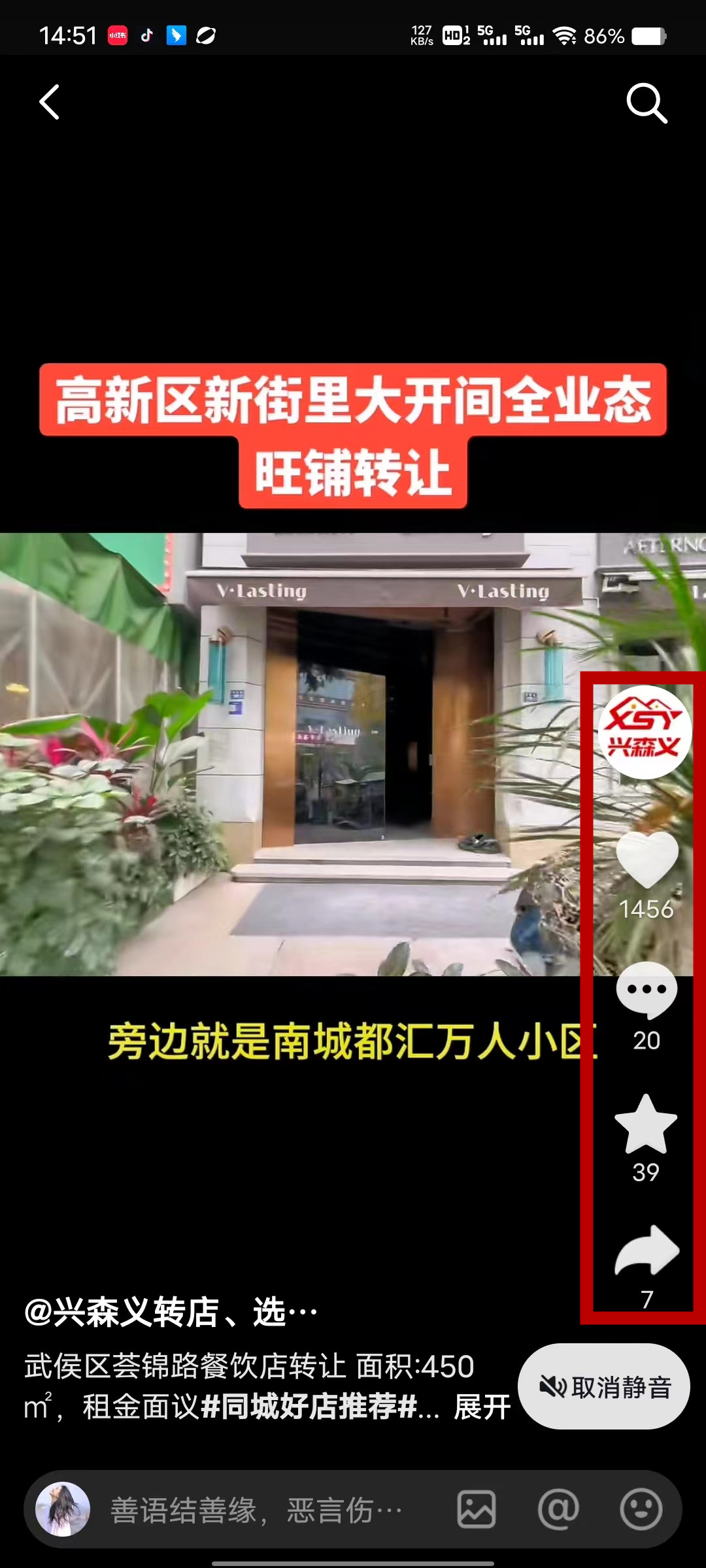武侯区荟锦路餐饮店已转让
