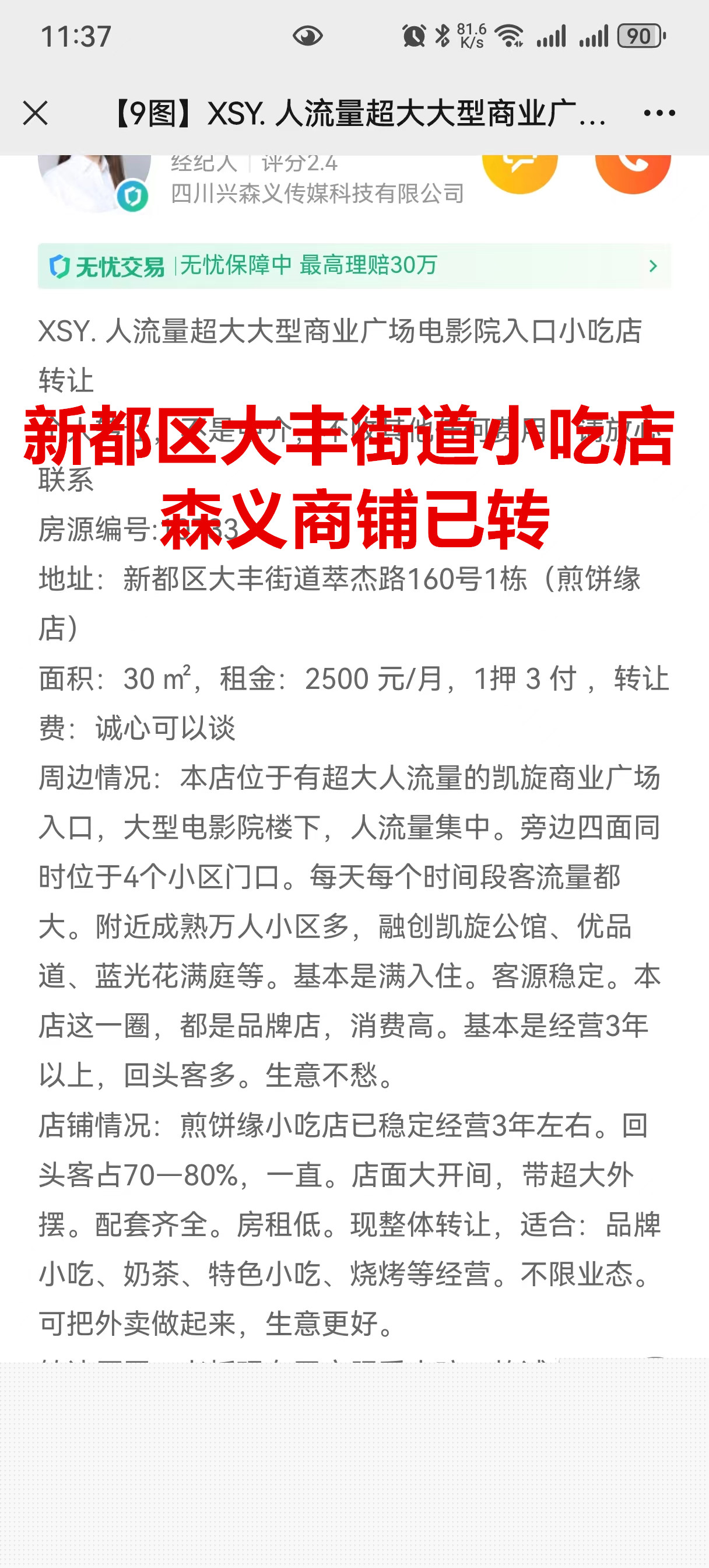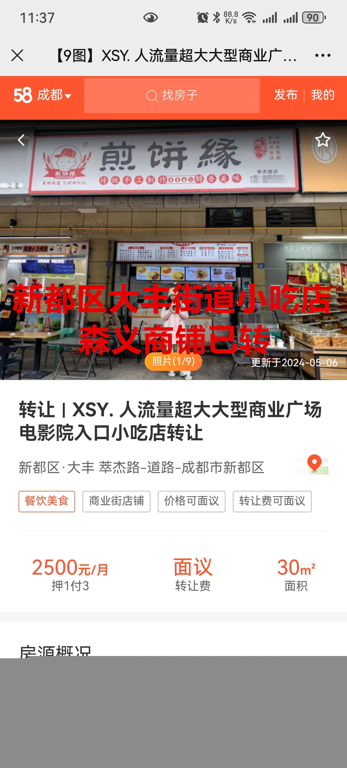 新都区大丰街道萃杰路小吃店已转让