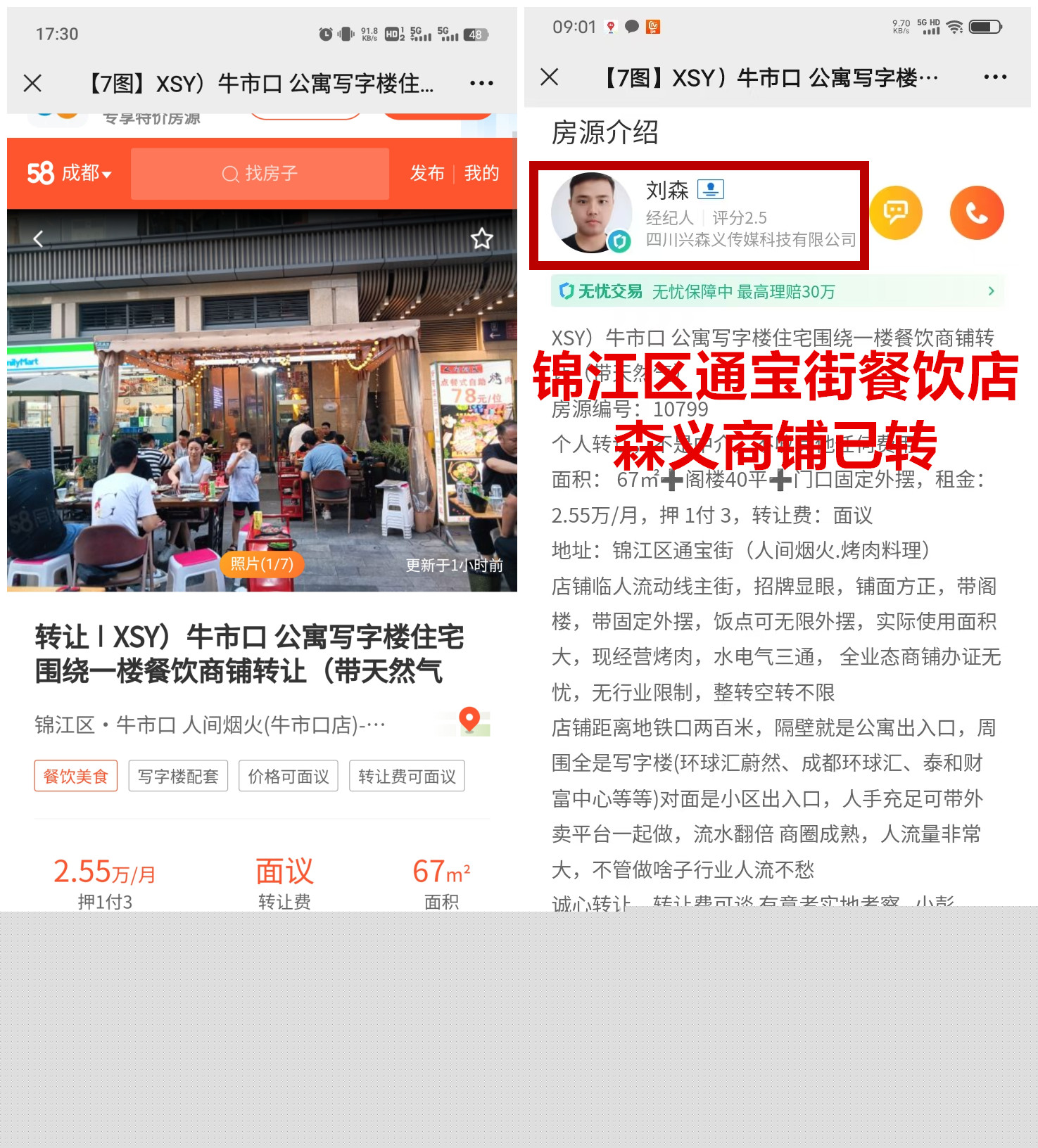 锦江区通宝街餐饮店已转让