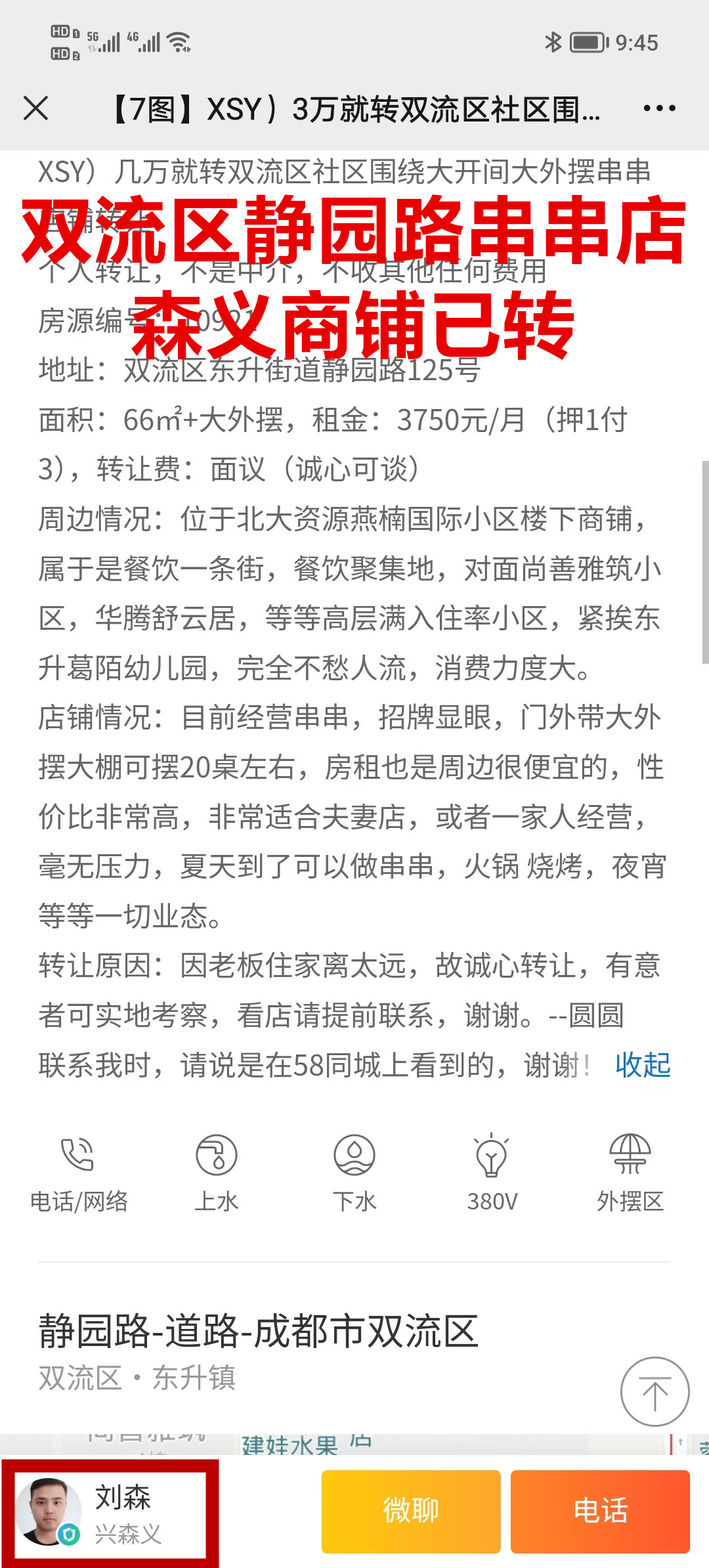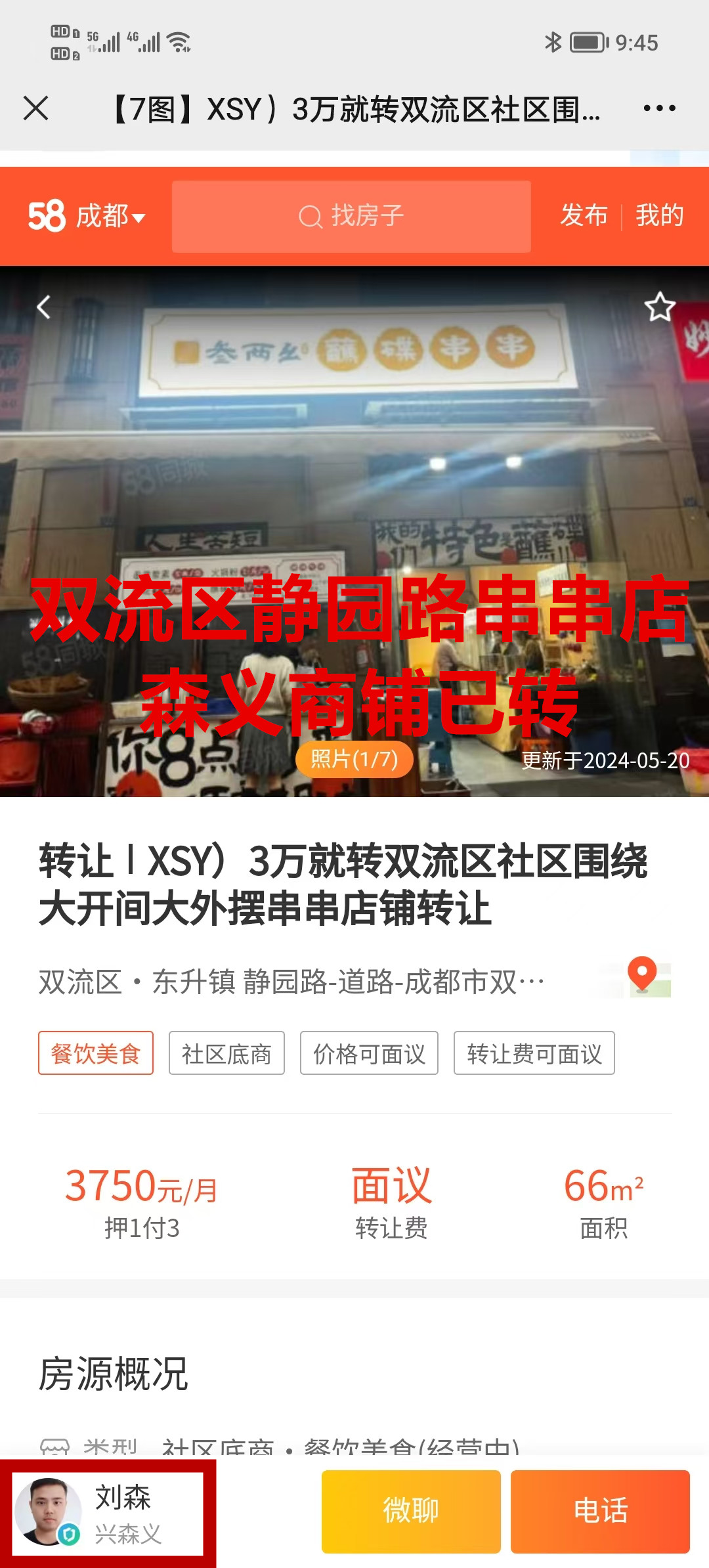 双流区东升街道静园路串串店已转让