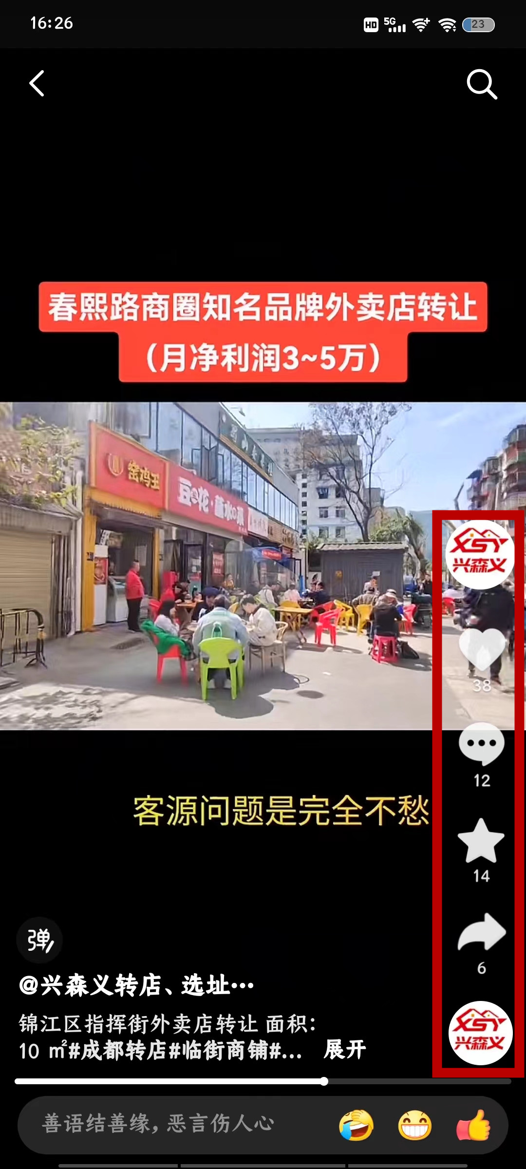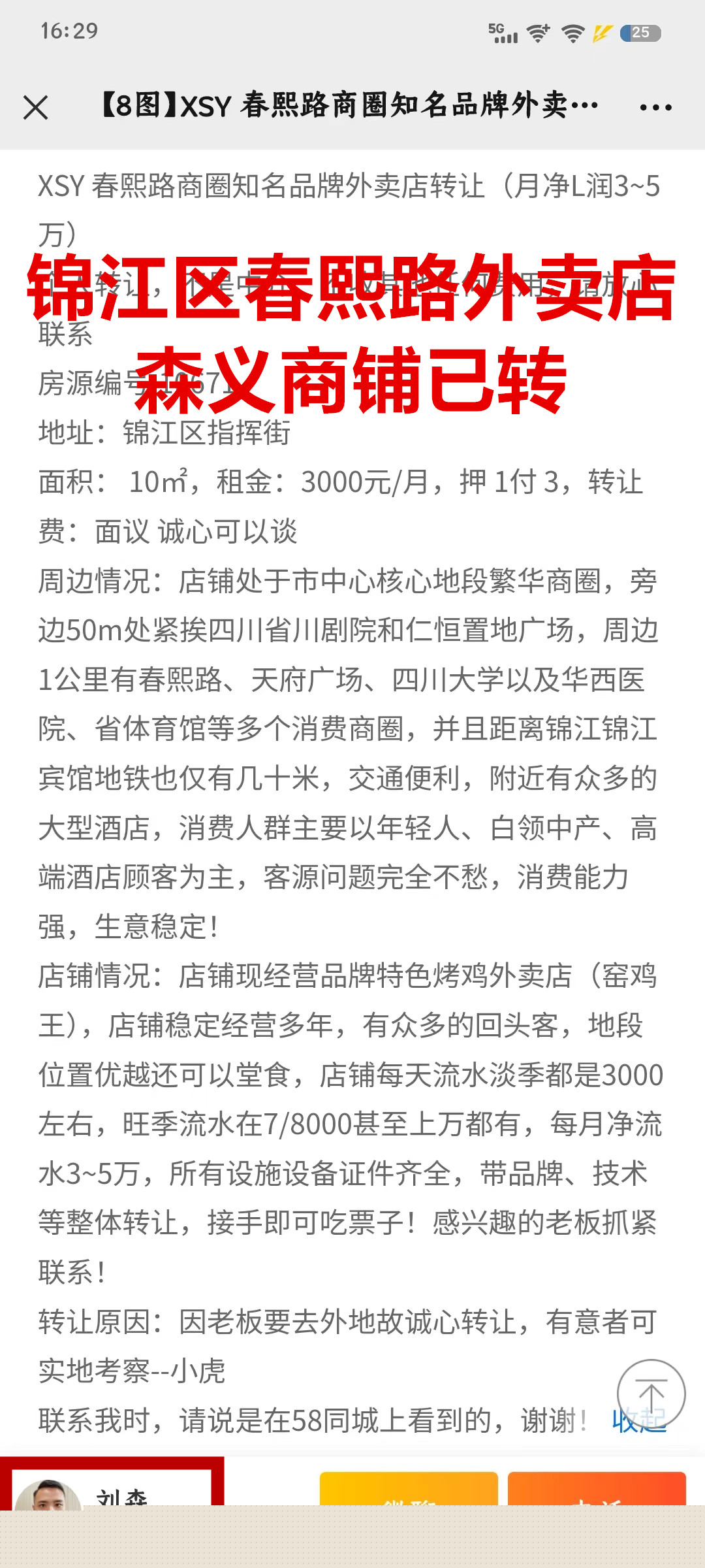锦江区指挥街外卖店已转让