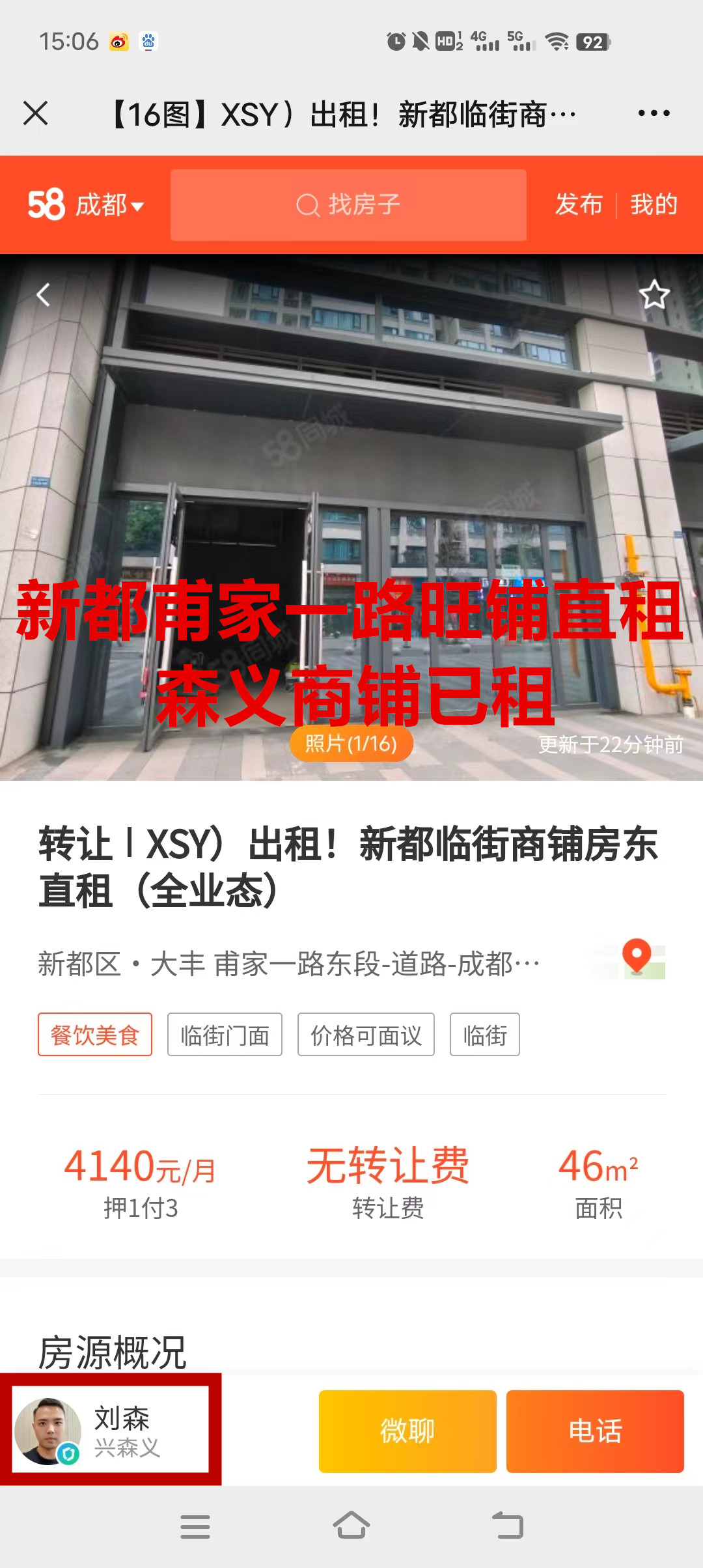 新都甫家一路东段旺铺出租