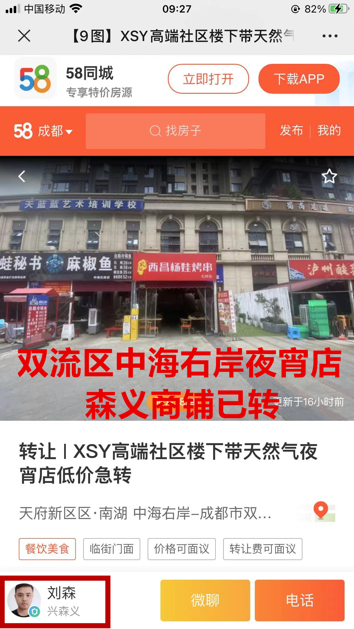 双流区中海右岸西夜宵店已转让