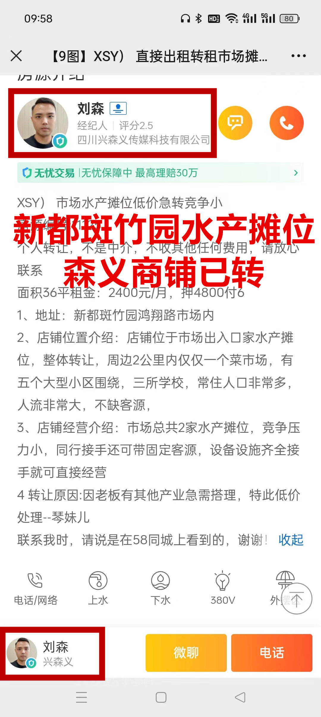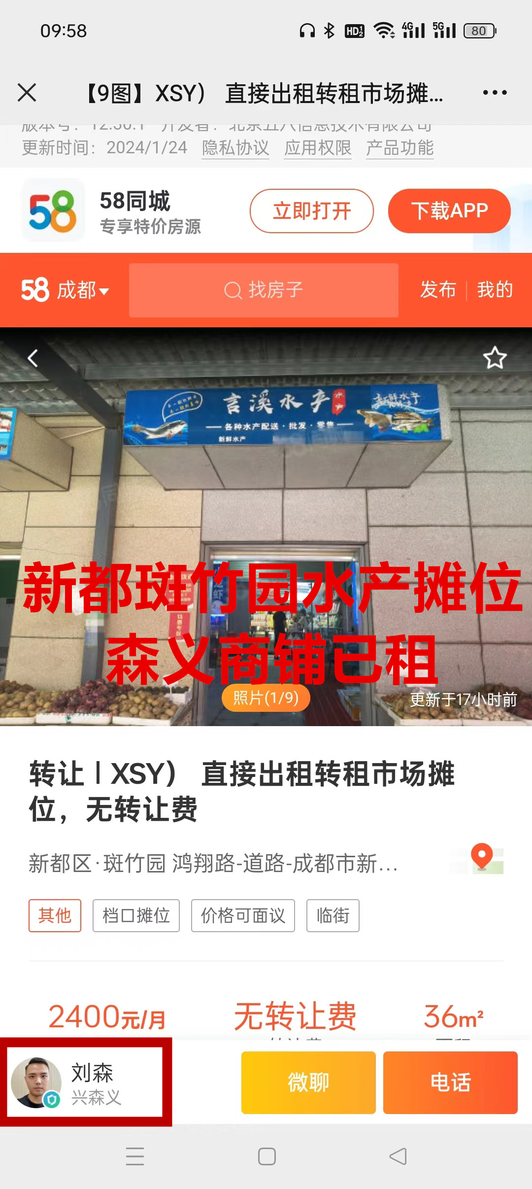 新都斑竹园鸿翔路市场内水产摊位已出租