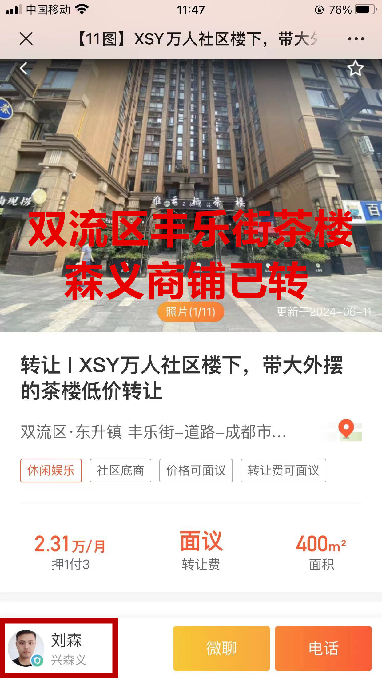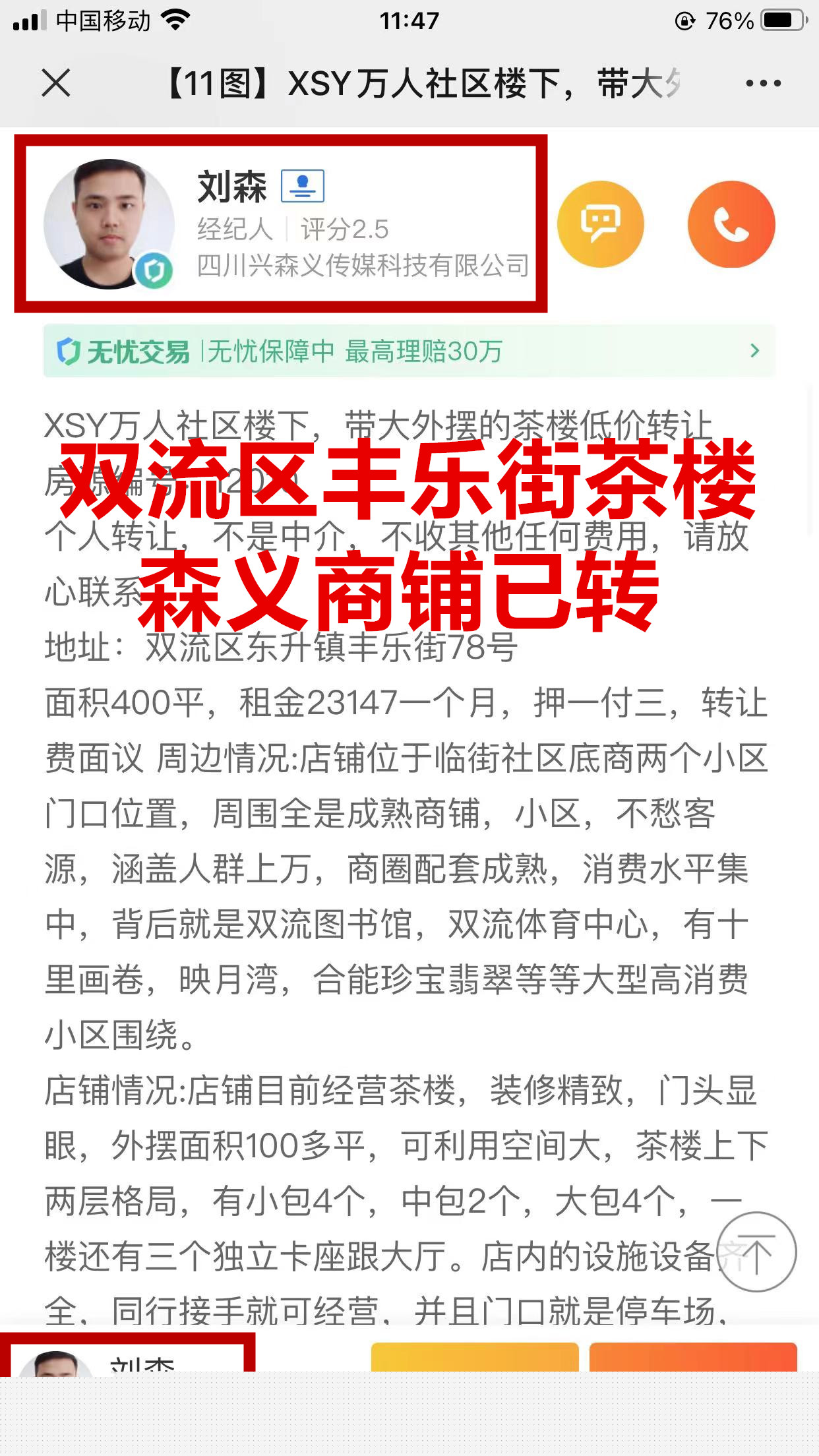 双流区东升镇丰乐街茶楼已转让