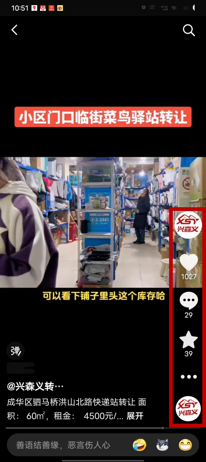 成华区驷马桥洪山北路菜鸟驿站已转让
