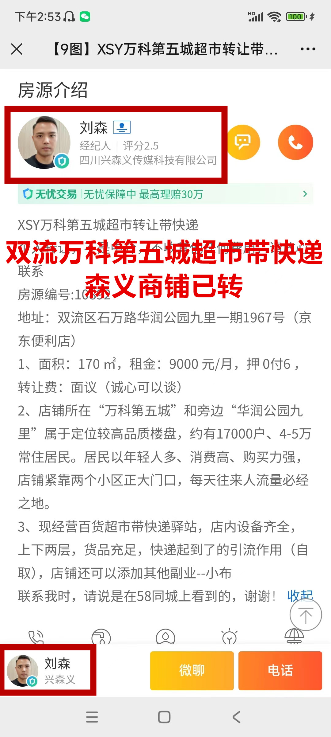 双流区石万路华润公园九里一期超市带快递已转让