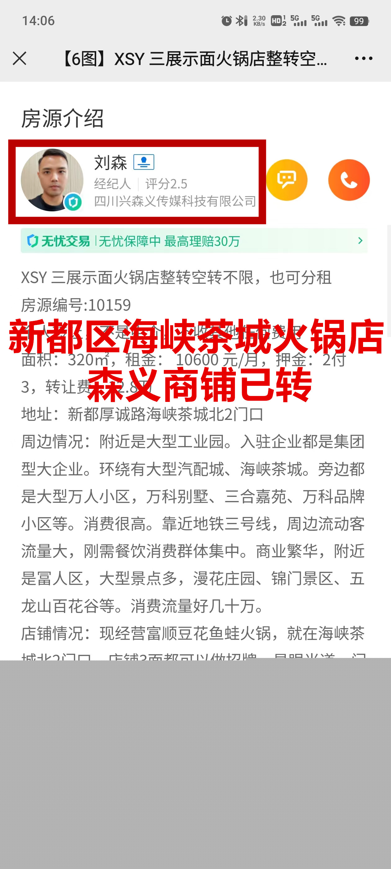 新都厚诚路海峡茶城北火锅店已转让