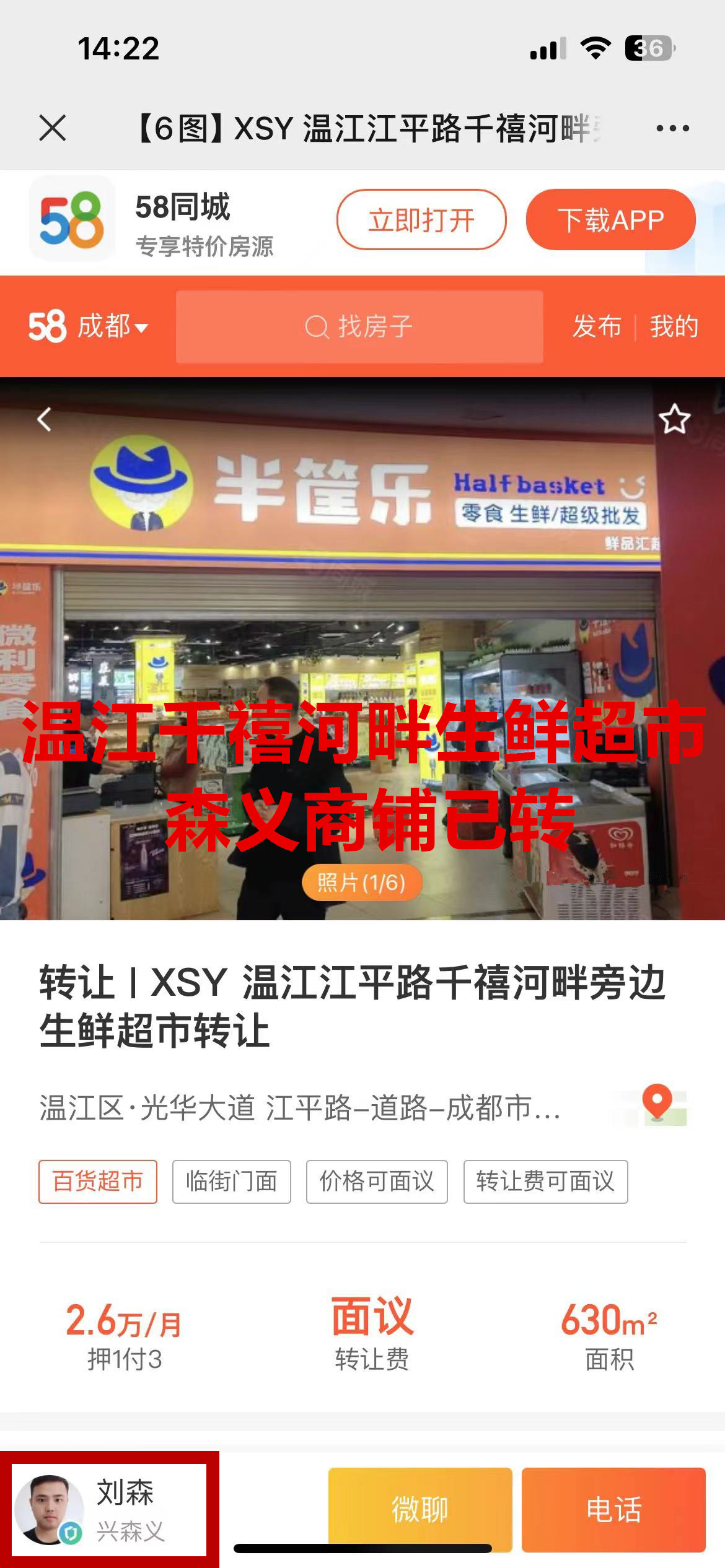 温江区嘉年华新生活B区江平路北生鲜超市已转让