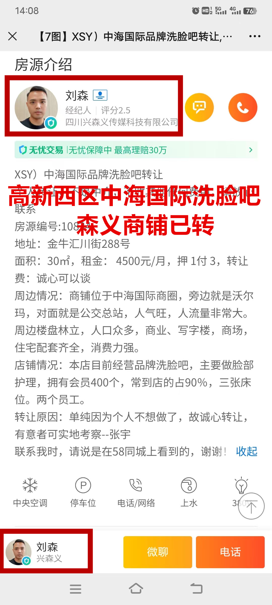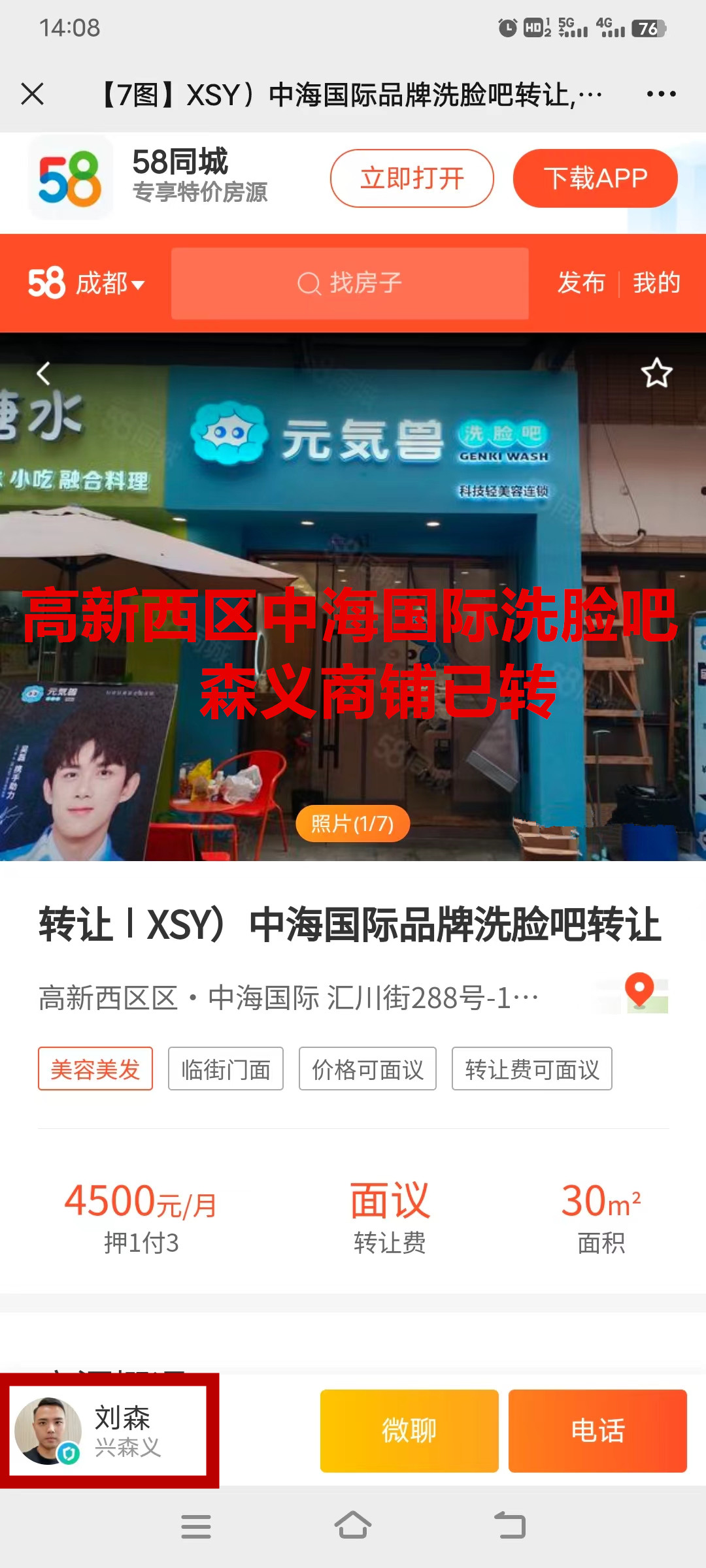 金牛汇川街洗脸吧已转让