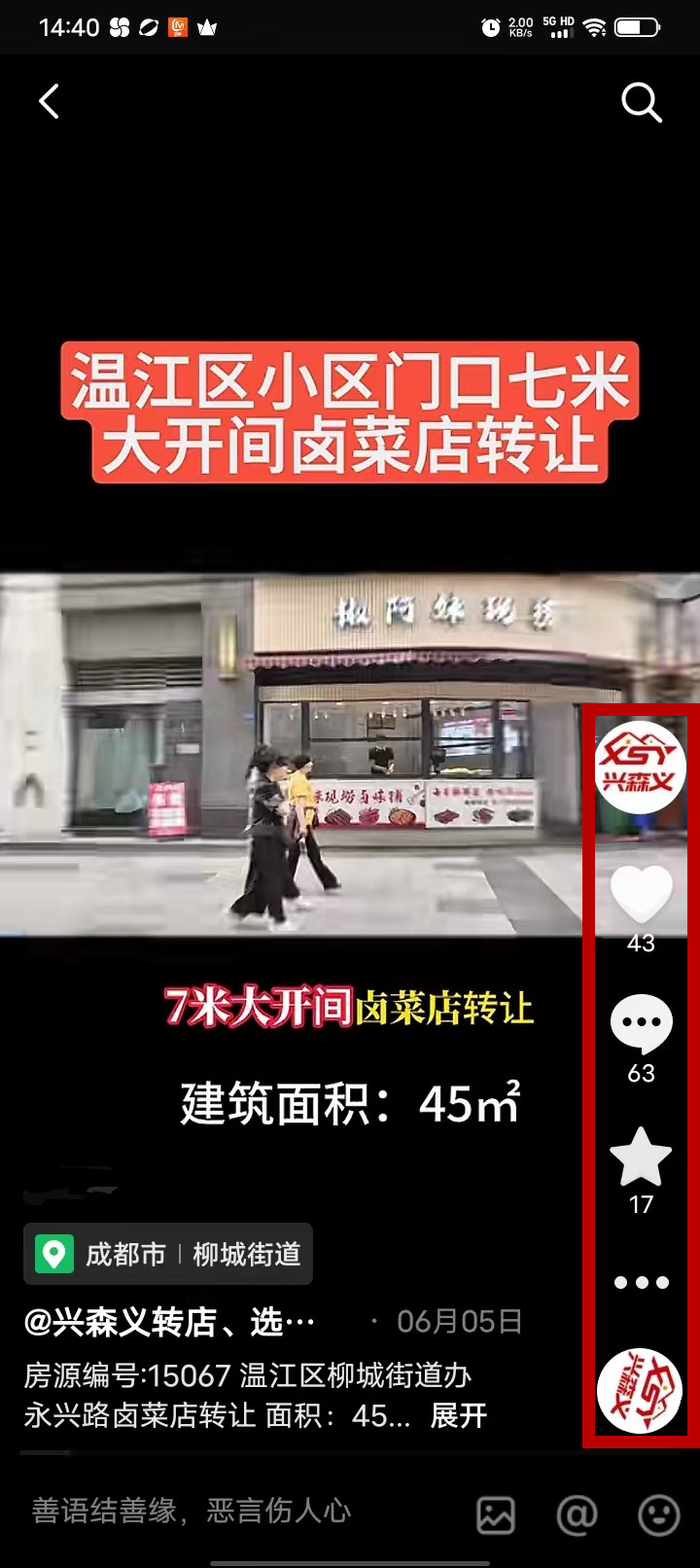 温江区柳城街道办永兴街卤菜店已转让