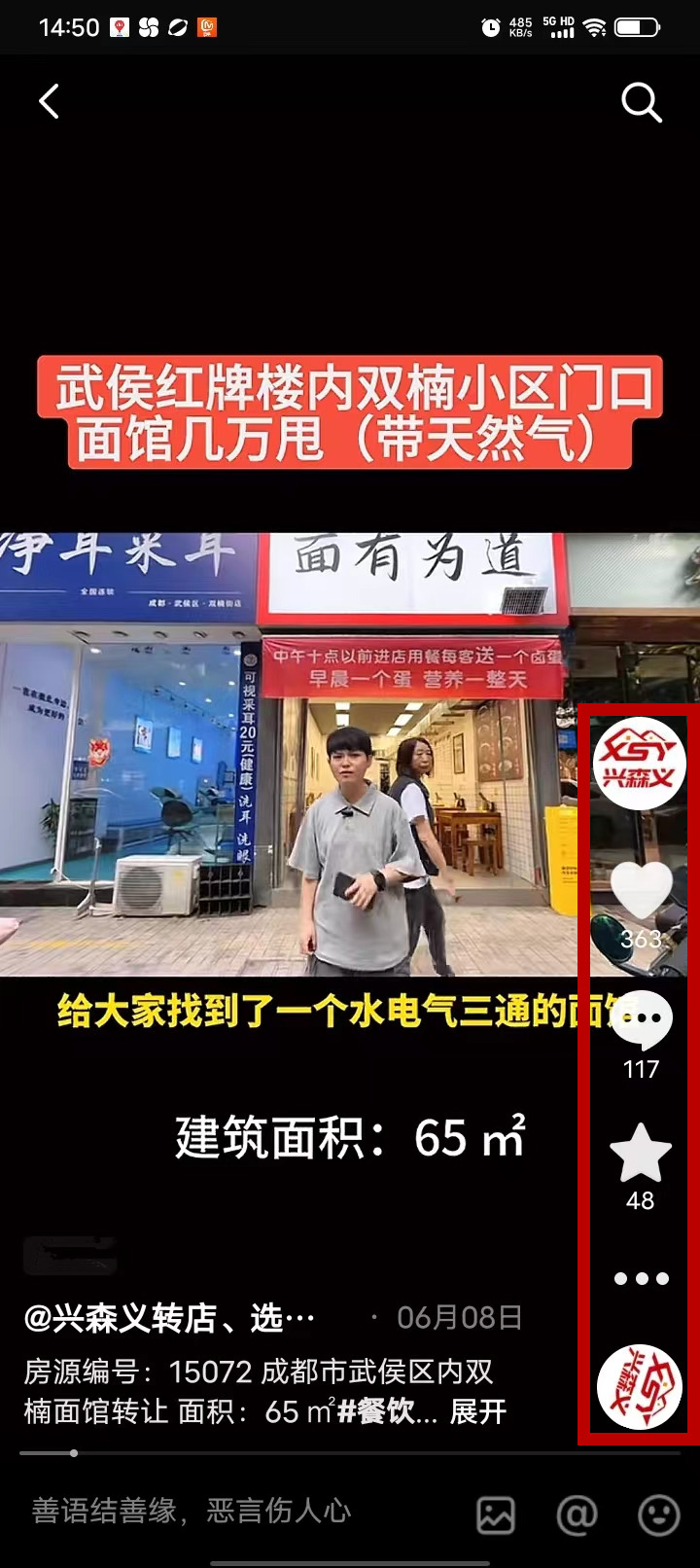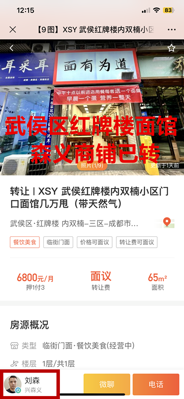 武侯区内双楠面馆已转让