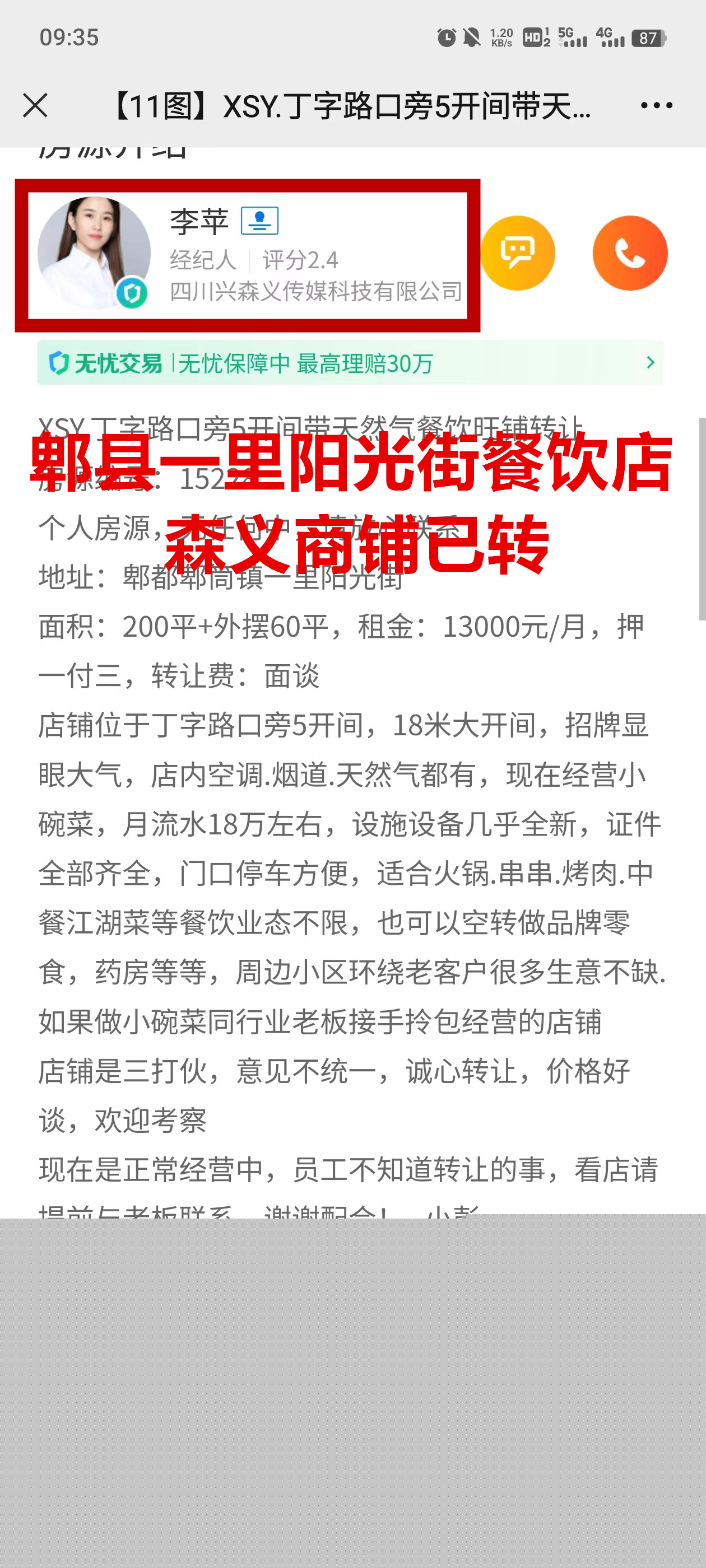 郫都郫筒镇一里阳光街餐饮店已转让