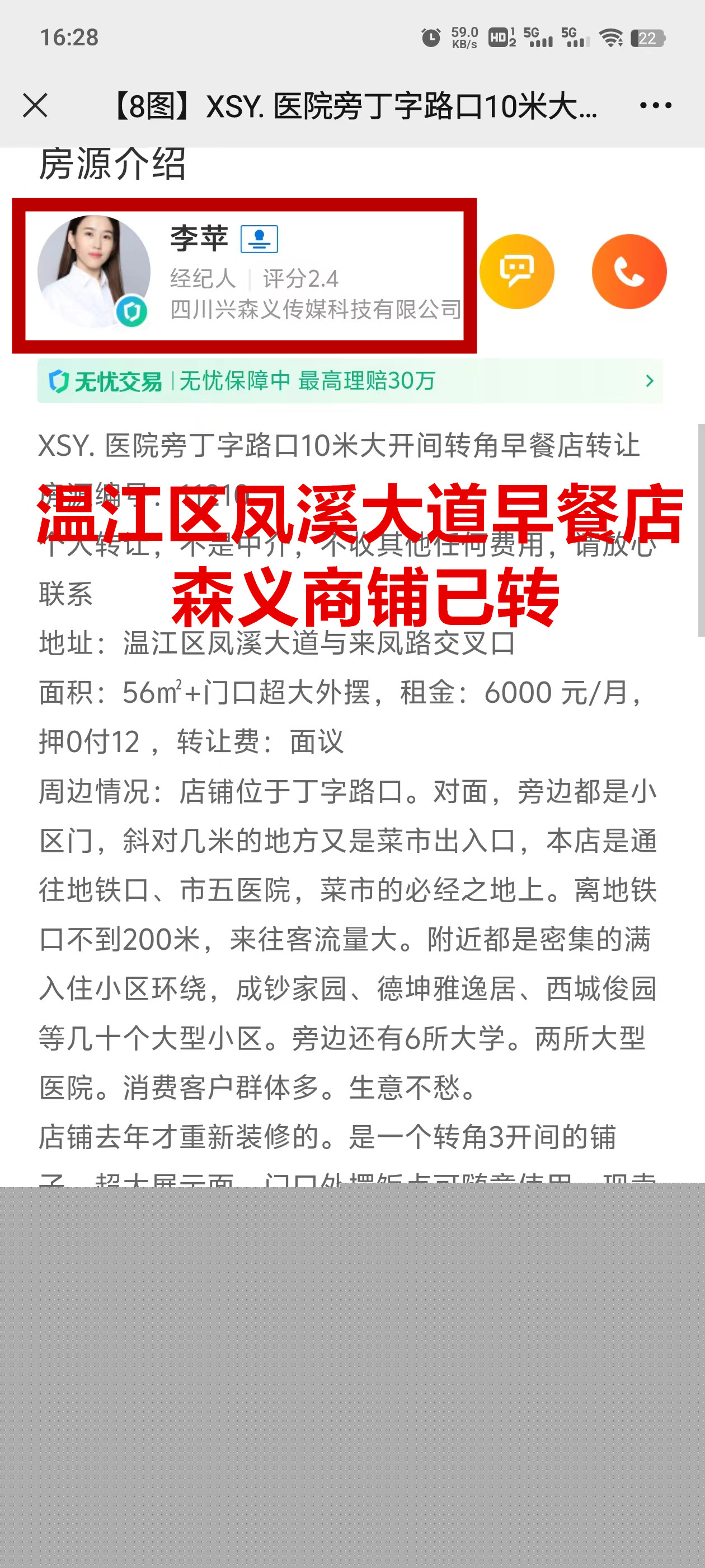 温江区凤溪大道与来凤路交叉口早餐店已转让