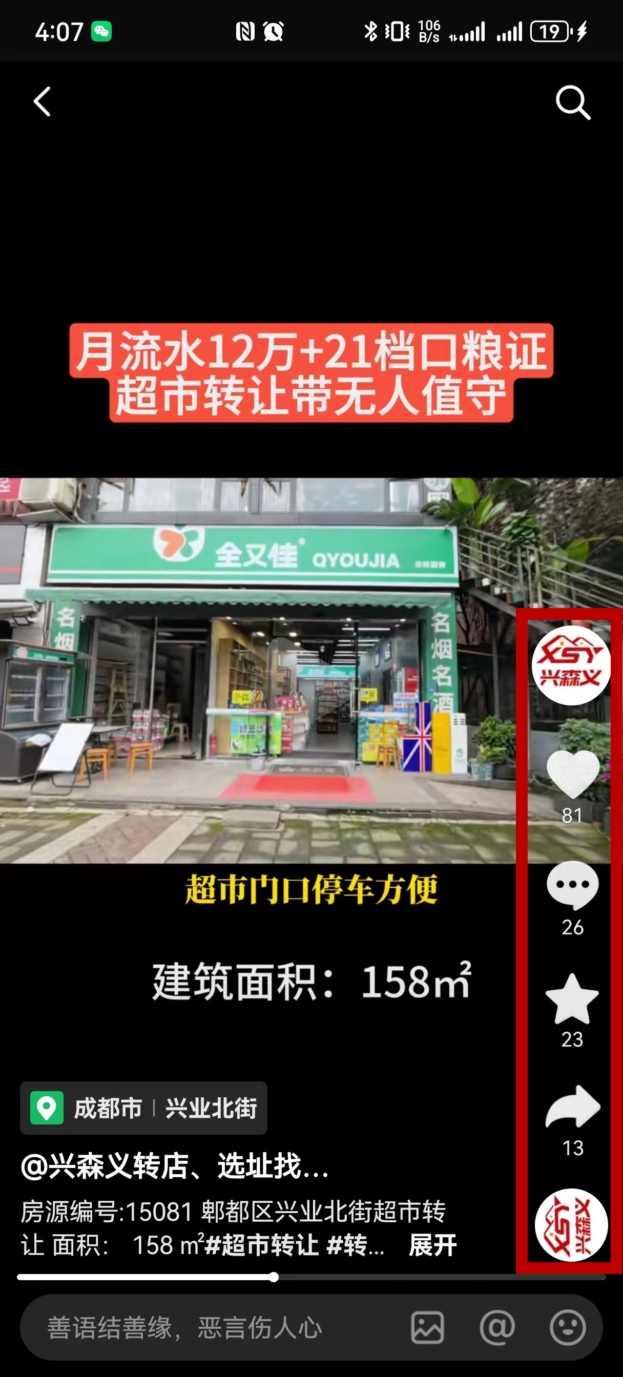 郫都区兴业北街超市已转让
