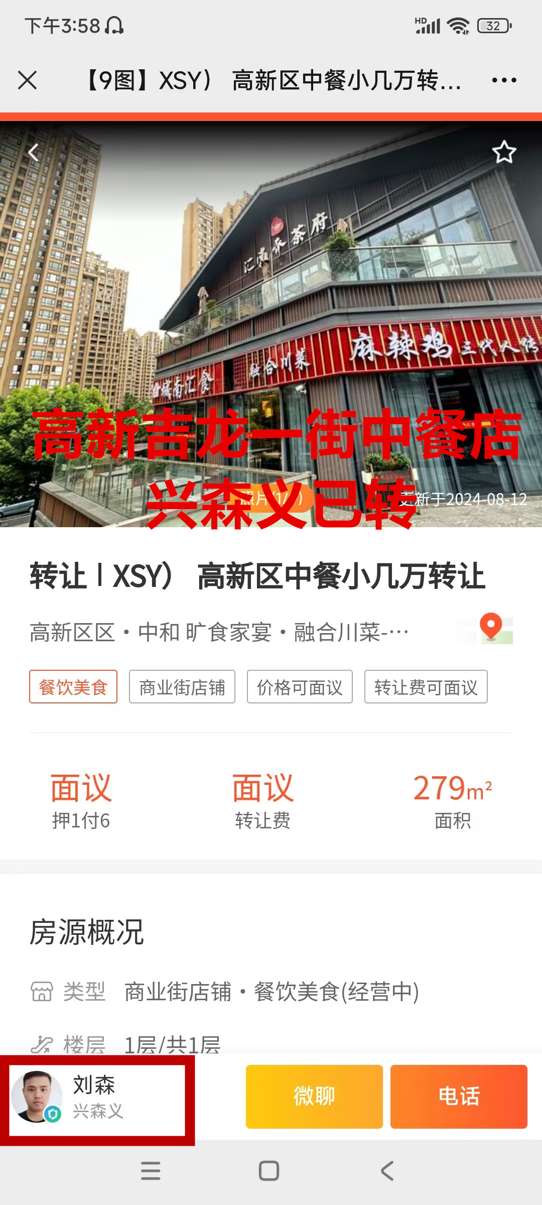 高新区吉龙一街中餐店已转让
