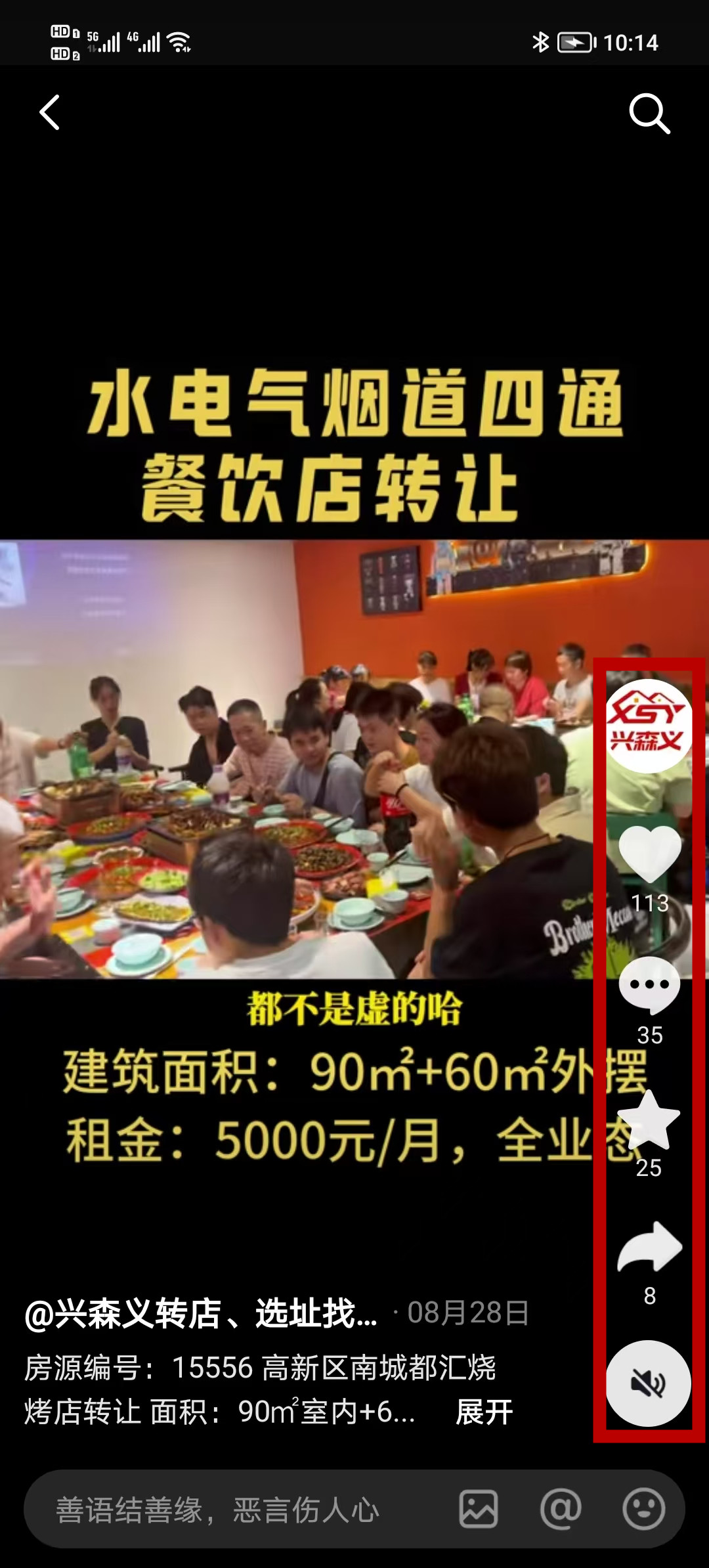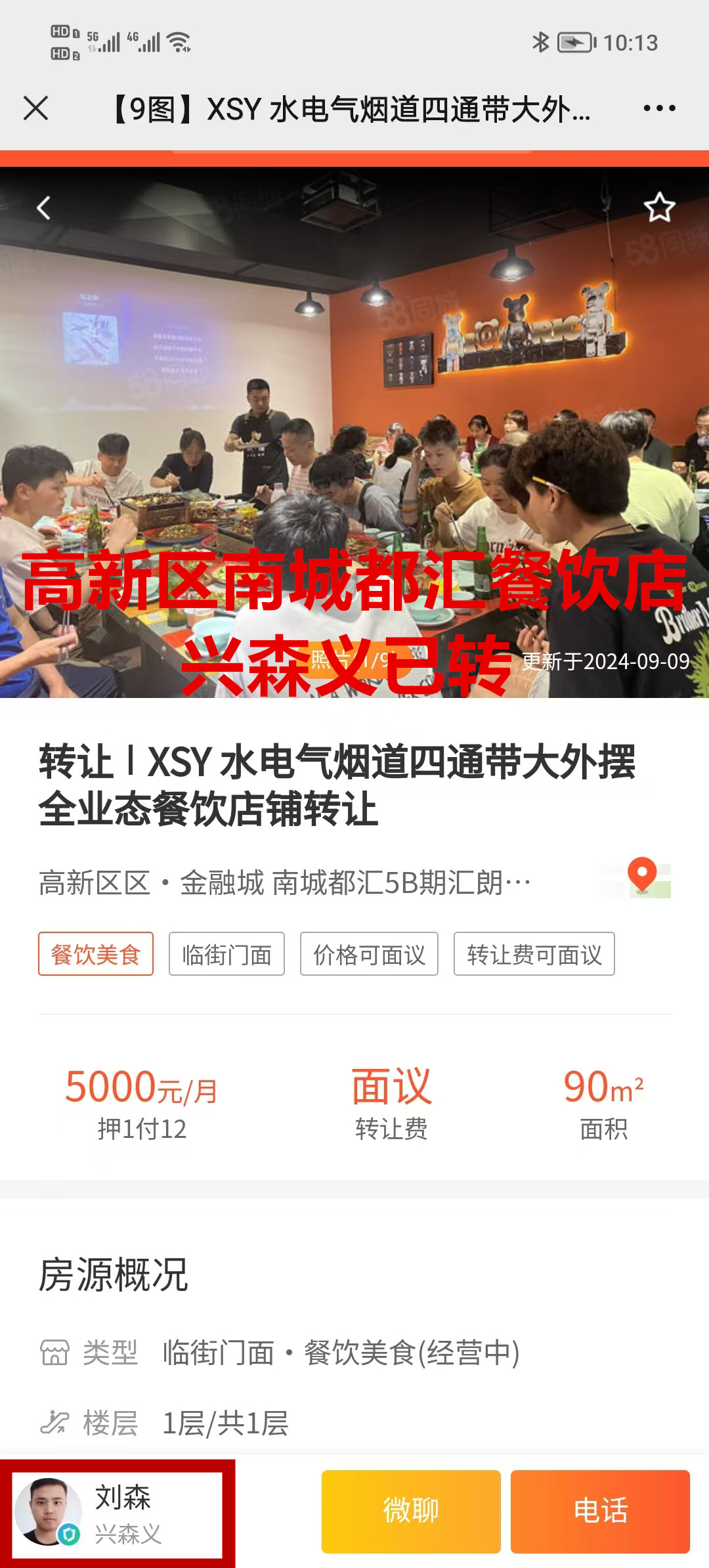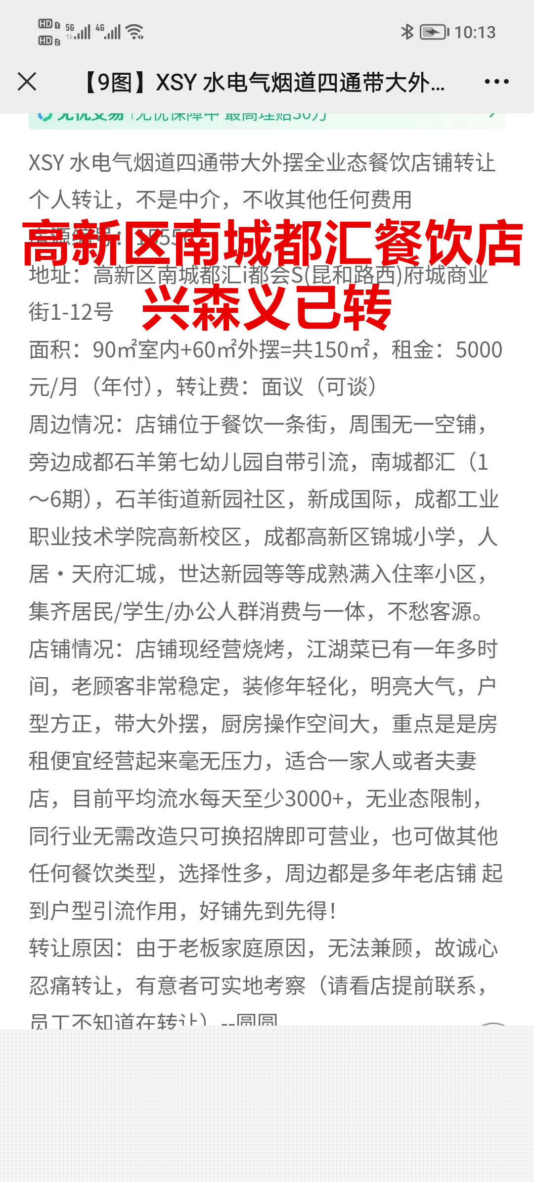 高新区南城都汇商业街餐饮店已转让