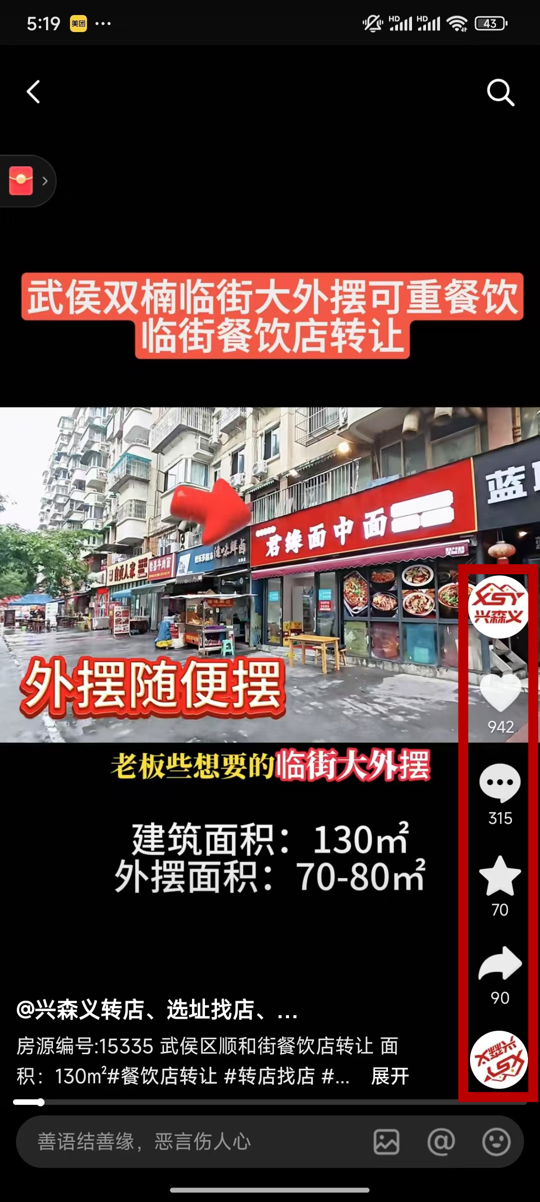 武侯区顺和街兴元丽园A区餐饮店已转让