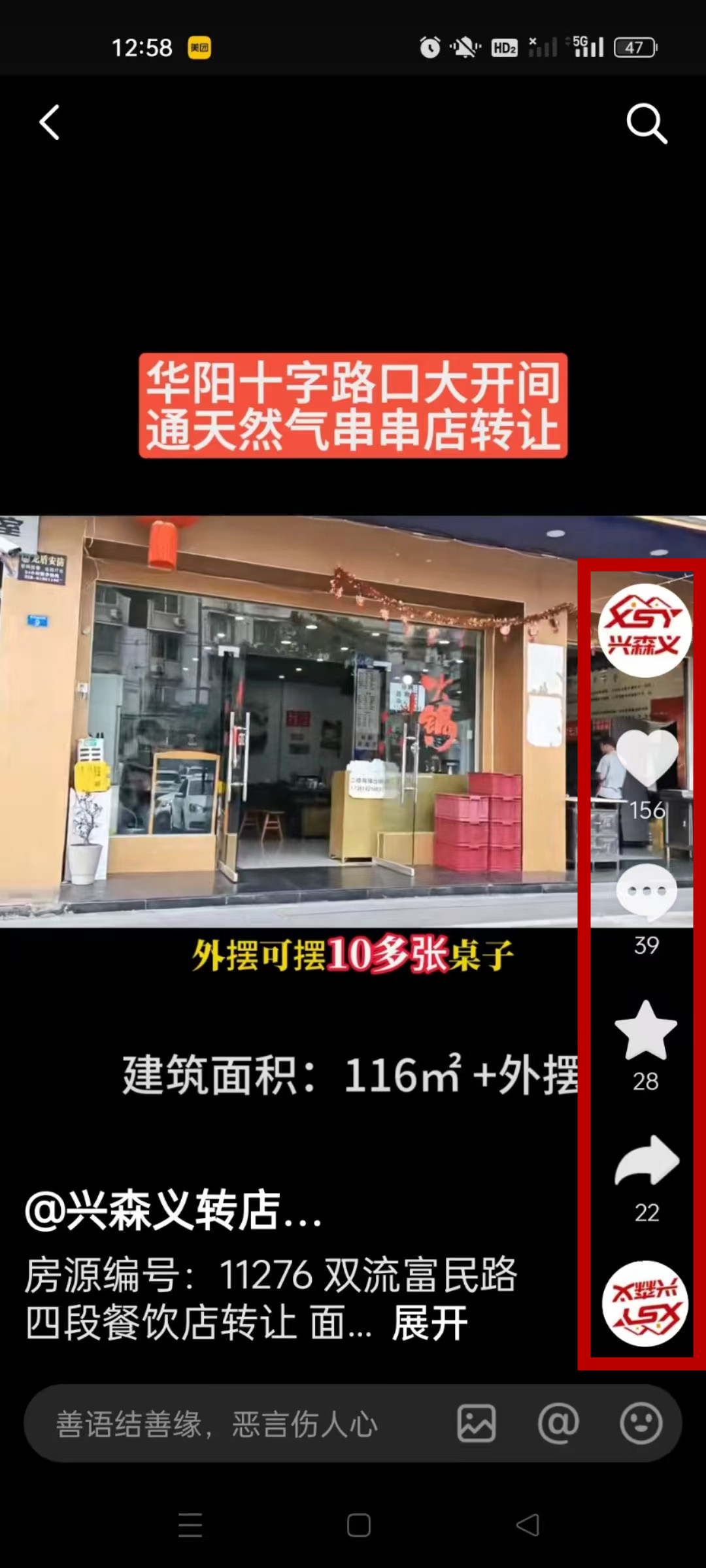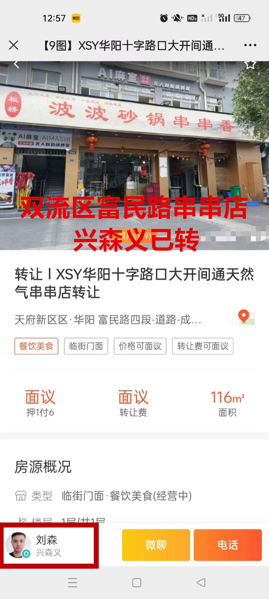 双流区富民路四段串串店已转让